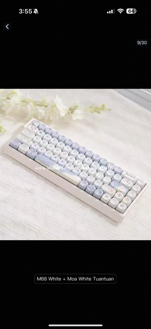M68 Wireless Bluetooth Mechanical Keyboard with Mahjong Sound, Cute for Girls, Silent for Office, Compatible with Computer and Mobile Phone Switch Sound : Evenings Cherry Blossom #Pre-Order