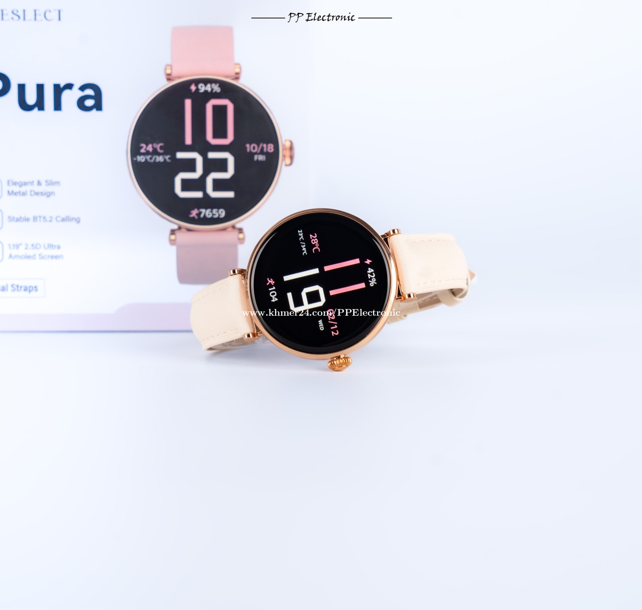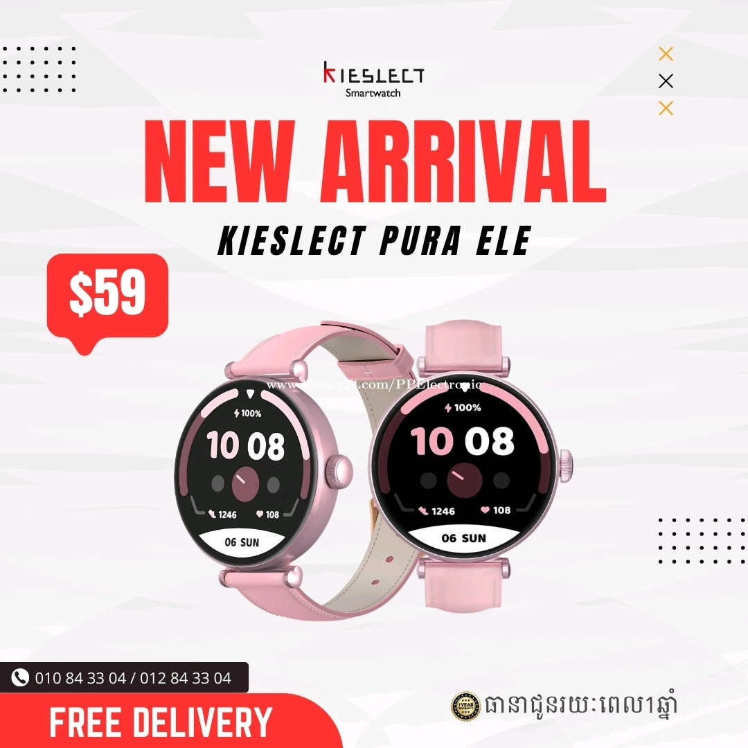 Kieslect Pura គឺជានាឡិកាឆ្លាតវៃសម្រាប់នារីដែលទើបនឹងមកដល់ថ្មីជាមួយការ Design មុខនាឡិកាតូចស្រាល តួខ្លួនមាន Detail រាងជាបេះដូងដ៏ Cute បន្សុីគ្នាជាមួយខ្សែស្បែកដ៏ប្រណិត បង្កើតចេញជារូបរាង Slim ស្អាត ឆ្លុះបញ្ចាំងនូវភាពសុីវីឡៃនិងមន្តស្នេហ៍របស់នារី មិនតែប៉ុណ្ណោះ វាក៏បាននាំមកនូវមុខងារឆ្លាតវៃជាច្រើនសម្រាប់ការប្រើប្រាស់ប្រចាំថ្ងៃ ជាមួយនឹងតម្លៃដ៏សមរម្យបំផុតដែលសុភាពនារីគ្រប់រូបគួរតែពិចារណា និងមានខ្សែចំនួន 2 នៅក្នុងប្រអប់ស្រាប់ មួយជាប្រភេទខ្សែស្បែក និងមួយទៀតជាប្រភេទខ្សែសុីលីកូន 💲 បញ្ជាទិញឥឡូវនេះដើម្បីទទួលបានតម្លៃពិសេស 🛵ដឹកជញ្ជូនដោយឥតគិតថ្លៃទូទាំងប្រទេស 🛡 ធានារយៈពេល 1 ឆ្នាំ 🔘 លក្ខណៈពិសេស ☑️ មុខងារ Bluetooth Calling ដែលមានសំឡេងឮច្បាស់ល្អ ☑️ផ្តល់សារដំណឹងពី Facebook,Messenger,Telegram និង App ផ្សេងៗជាច្រើនទៀត ☑️មុខងារតាមដានសុខភាពស្ត្រី ☑️មុខងារកីឡាជាង 100 ប្រភេទ ☑️ទិន្នន័យសកម្មភាពប្រចាំថ្ងៃ ☑️មុខងារវាស់ចង្វាក់បេះដូង ☑️មុខងារវាស់កម្រិតអុកសុីសែនក្នុងឈាម ☑️មុខងារតាមដានការគេង ☑️មុខងារហ្វឹកហាត់ខ្យល់ដង្ហើម ☑️មុខងារតាមដានភាព Stress និង អារម្មណ៍ ☑️មុខងារបង្ហាញអាកាសធាតុ ☑️មុខងារផ្អាក និងផ្លាស់ប្តូរបទចម្រៀង ☑️មុខងារគណនាលេខ ☑️មុខងារស្វែងរកទូរស័ព្ទ ☑️មុខងារ AI Voice Assistant ☑️អាចកំណត់ម៉ោងរោទិ៍និងមុខងារផ្សេងៗជាច្រើនទៀត ☑️ថាមពលថ្មអាចប្រើប្រាស់បានជាង 1 សប្តាហ៍អាស្រ័យលើការប្រើប្រាស់ ☑️អាចតាំងរូប និងផ្លាស់ប្តូរមុខនាឡិកាបានជាច្រើនប្រភេទ ☎️ ទំនាក់ទំនង: 010843xxxClick To Call (Smart) / 012843xxxClick To Call (Cellcard) Telegram: https://t.me/PP_Eletronic_011 🏢 អាសយដ្ឋាន : ផ្ទះលេខ 56D2 ផ្លូវ 257 បឹងសាឡាង ទួលគោក ភ្នំពេញ Google Map: https://maps.app.goo.gl/5mVkqkoiqsmjPSb59