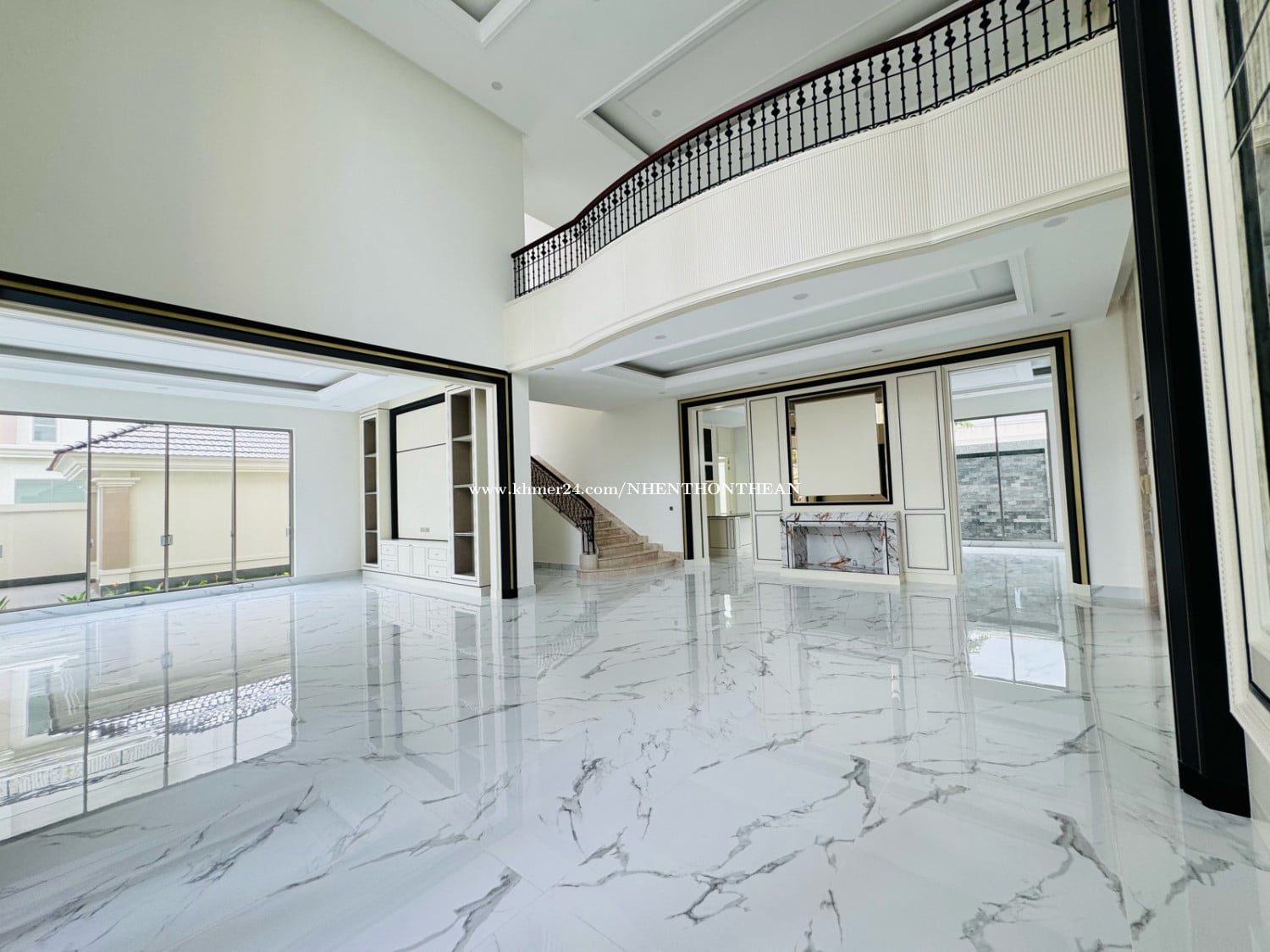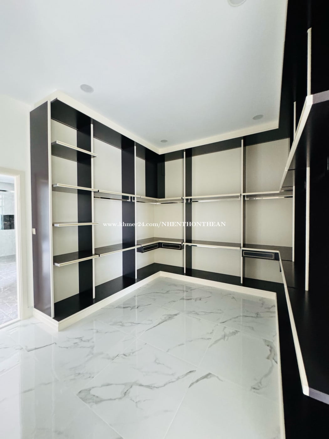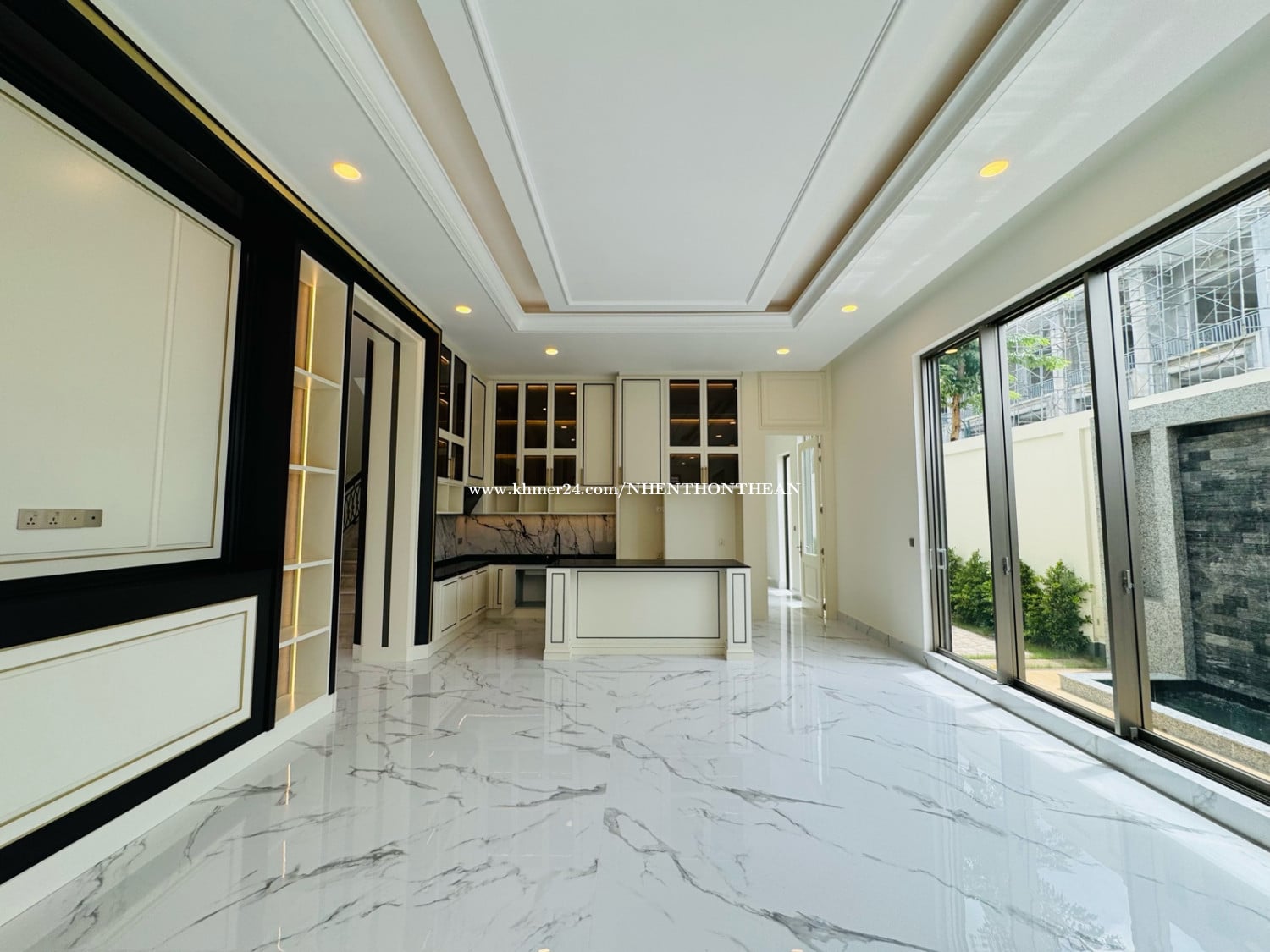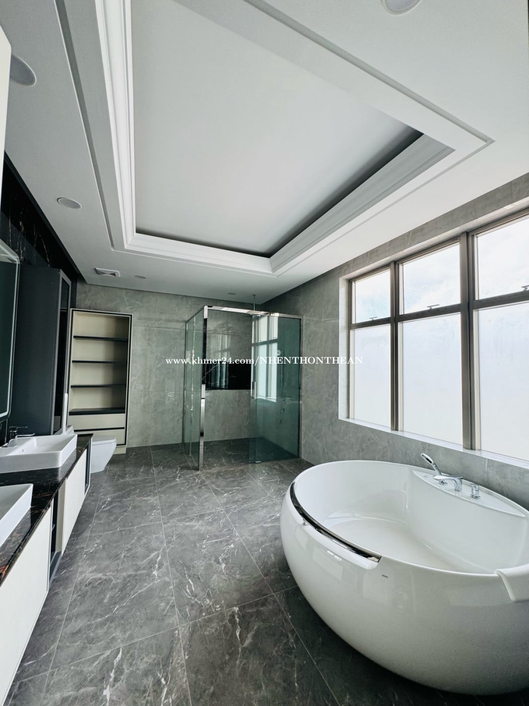 King Villa 7 Bedrooms For Rent Price: 13500$ per month Land size: 39m x 40m House size: 21m x 16.5m Bedrooms:07 plus 2 maid rooms Bathroom:11 Furniture: Curtains and AC Has lift Parking around 5 cars up It is very good for living and office safe area no flooding. It is located not far from bkk1, New airport, Aeon mall3.