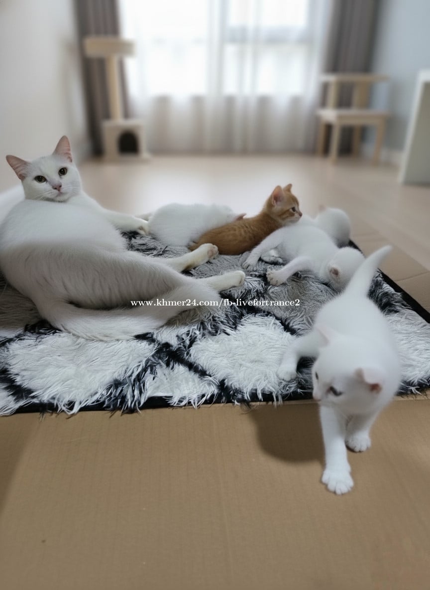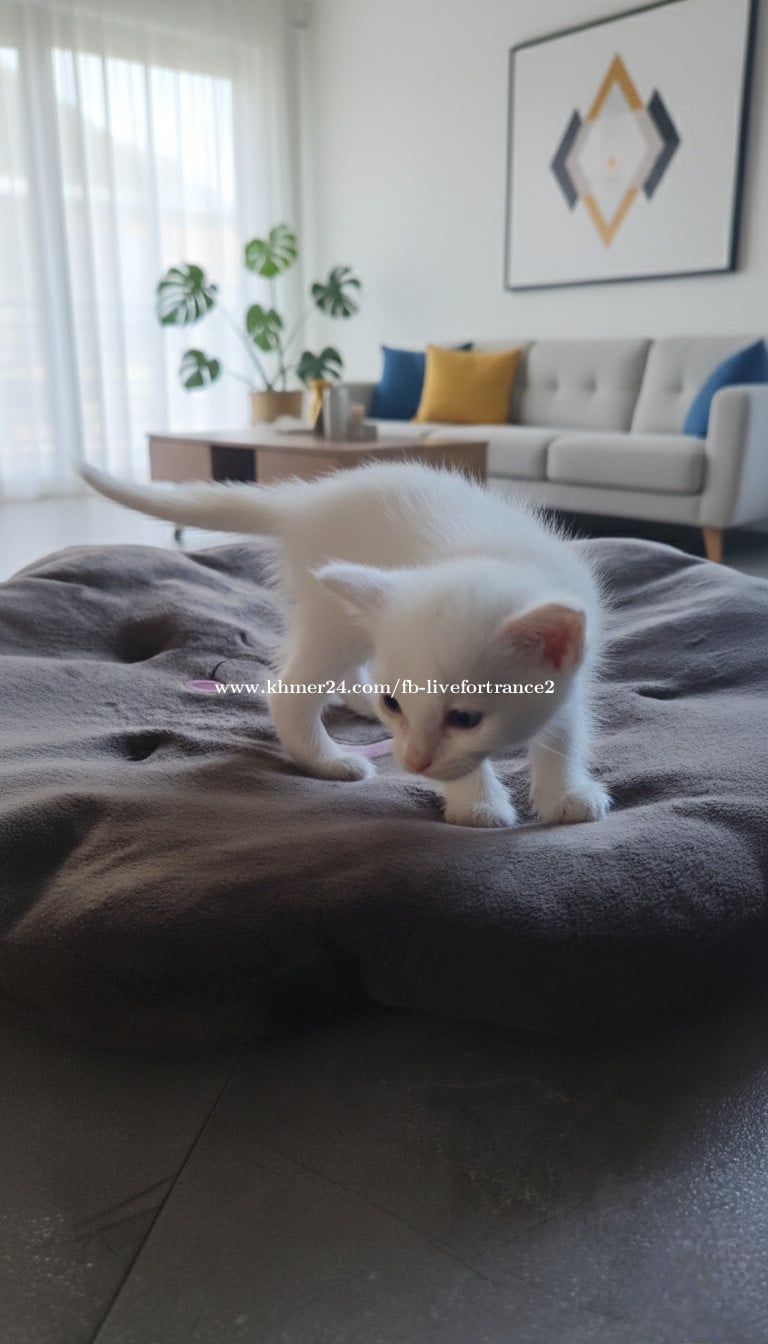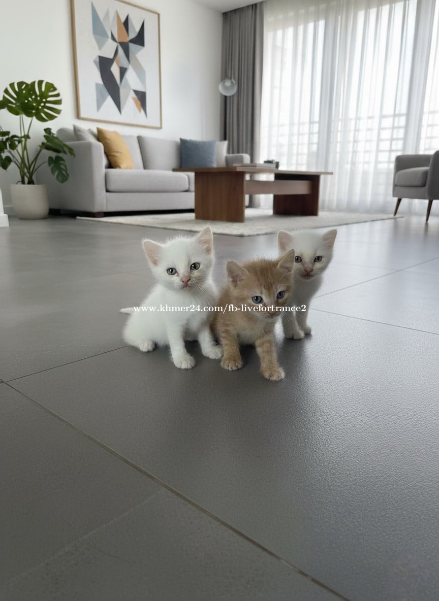 White cat - Khao Manee kitties. Age - 1 month. Price 100$ for one kitty. Location Sihanoukville. Big Orange cat Arabian Mau, 6 months, Very affectionate and kind, loves walks, accustomed to dry food such as Whiskas. Litter box trained.