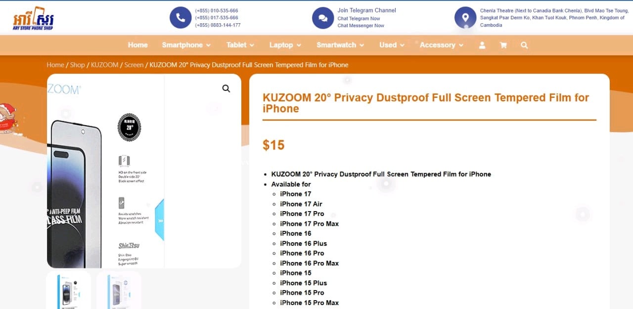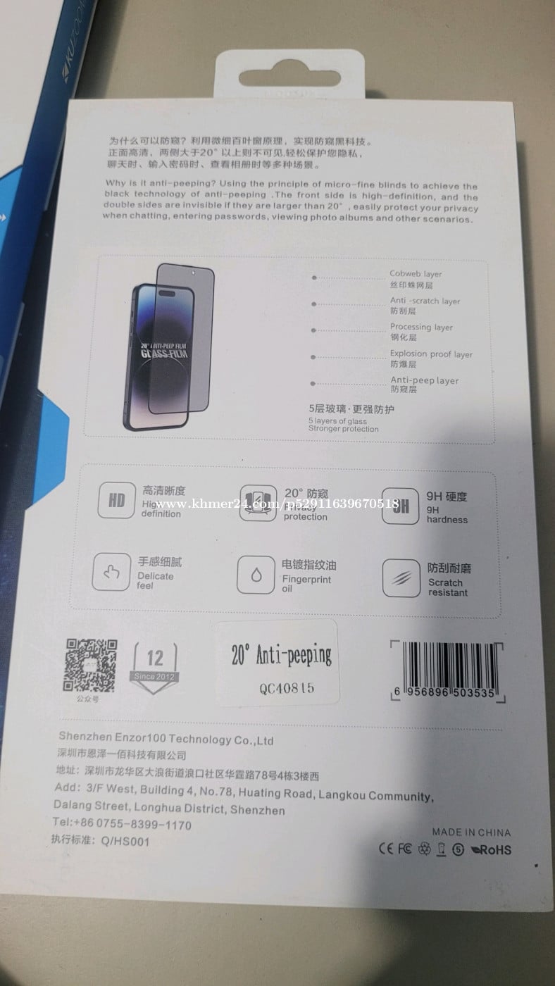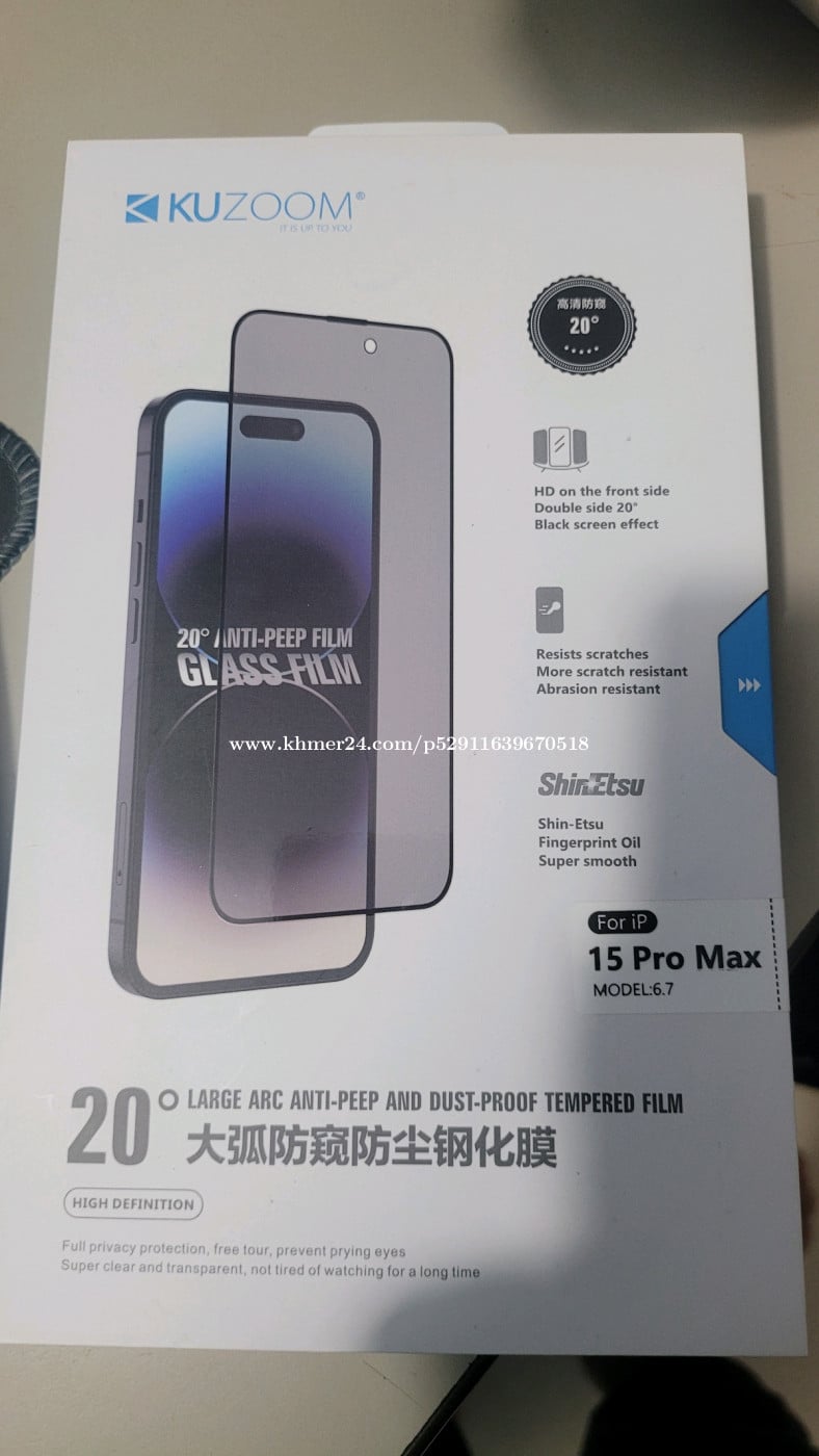 Muzoom Privacy Dustproof ស្គ្រីនមាំ ការងាដីបានល្អ មានប្រអប់ របស់ក្រុមហ៊ុន មាន2 ស្តុក Iphone 15 pro max only ****ថោកជាងហាង 5$