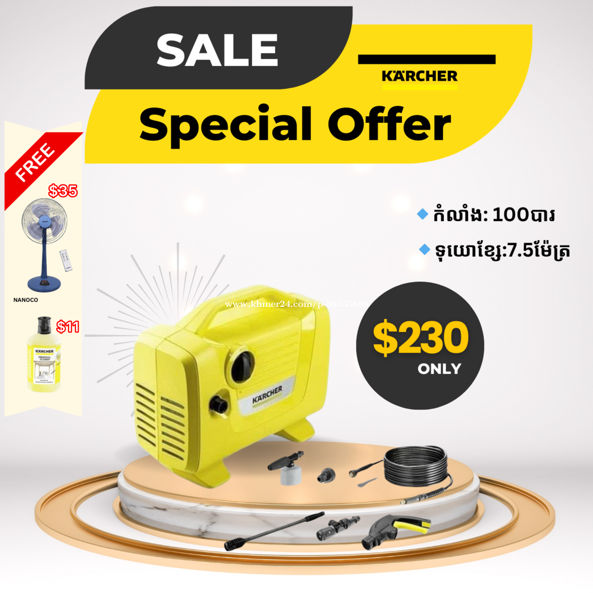 ✨ឈុតប្រមូសិនថ្មី , with special promotion offer for KARCHER Products🇩🇪 💢2in1 ម៉ាសុីនលាងឡាននិងលាងម៉ាសុីនត្រជាក់ K2 power VPS : 🔹តម្លៃ: $230 តែប៉ុណ្ណោះ💯 + ឈុតថែម 2មុខ 🔥($46free) 🔹 កំលាំងបាញ់ទឹកចេញ 100បារ 🔥 🔹ទុយោវែងបាន 7.5 ម៉ែត្រ 🔹មានភ្ជាប់ក្បាលបាញ់ខ្លី អាចបត់បាន360ដឺក្រេ✔️ 🔹គុណភាពខ្ពស់(ស្តង់ដាផលិតផលអាឡឺម៉ង់(EU) 🇩🇪) 🔹មានការធានារយៈពេល1ឆ្នាំ 💯 🔹មានស្តុក , ភ្ញៀវមានចំណាប់អារម្មណ៍អាចបញ្ជាកម្មង់តាមផេកផ្ទាល់ រឺអញ្ជើញមកshowroomហាងដេីម្បីបានប្រមូសិនជាច្រើនទៀត។ 💥តម្លៃដកឈុតថែម ចុះជូន15% 🏠ហាងសេតធើផ្គត់ផ្គង់សំភារៈអគ្គិសនី(fb page) #84BEo, ផ្លូវ199, ចំការមន, ភ្នំពេញ(ចំហៀងក្រោយពេទ្យរុស្សី) 📲017444xxxClick To Call (telegram) 📲093575xxxClick To Call 📲089727xxxClick To Call (telegram)