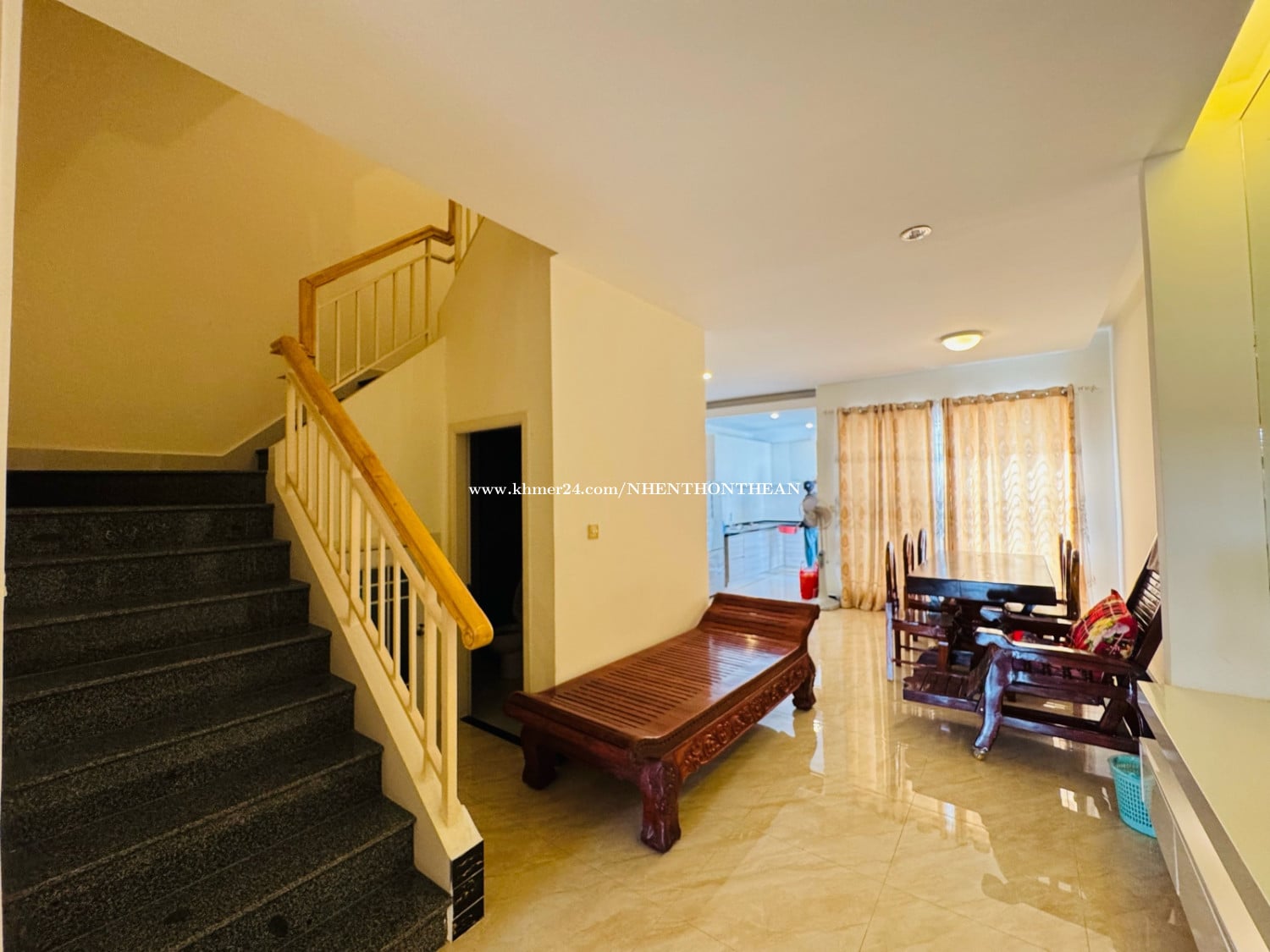 LA For Sale At Peng Hout Beoung Snor Project: 6 Selling price: 190000$ Land size: 5.1m x 19m House size: 5.1m x 12m Bedrooms: 04 Bathrooms:05 Some furnished It is very good for living and office safe area no flooding.