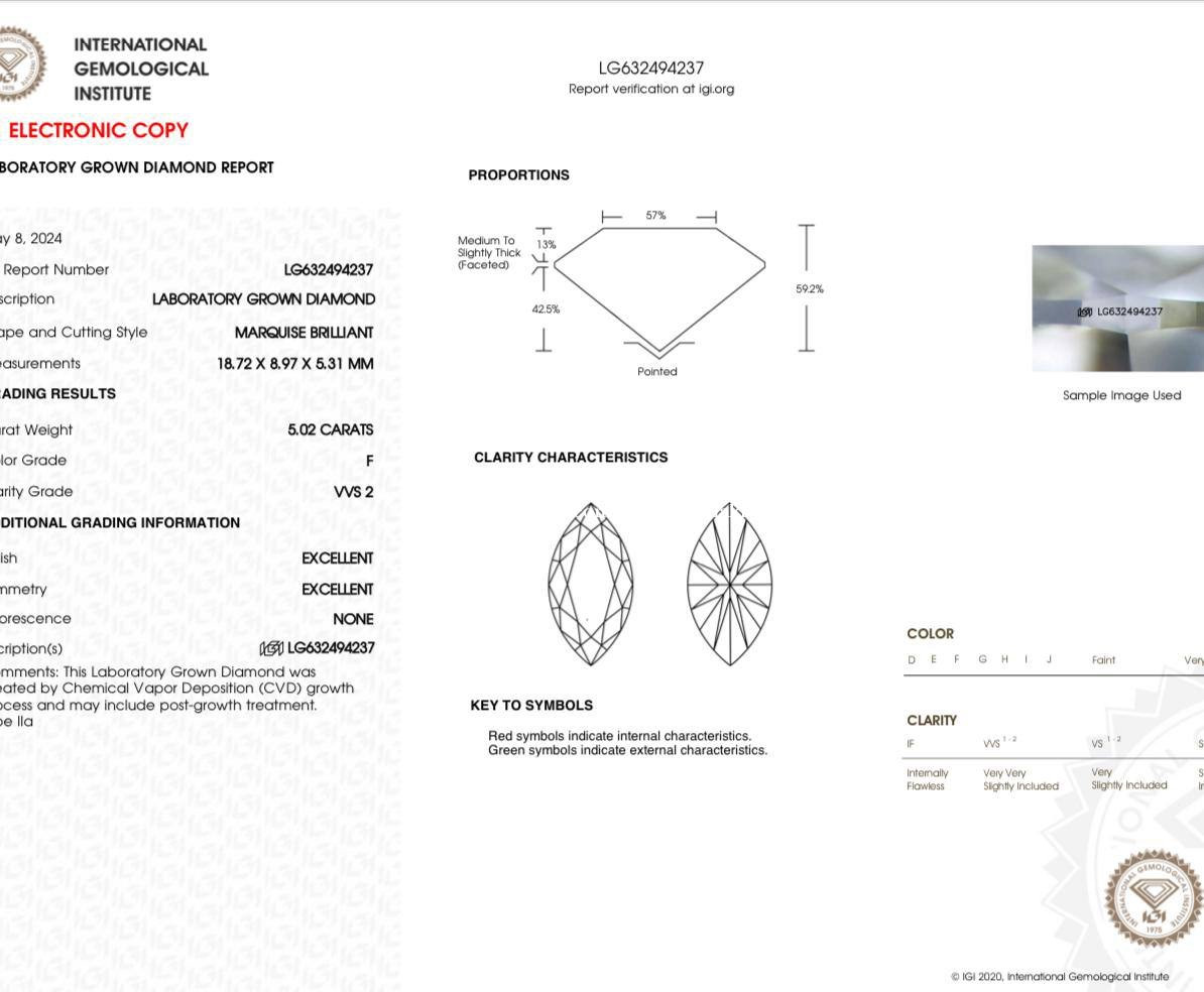 Marquise brilliant 18.71 li 5.02 cts F vvs2 IGI certificate Price : 3250$ ( exclude setting )