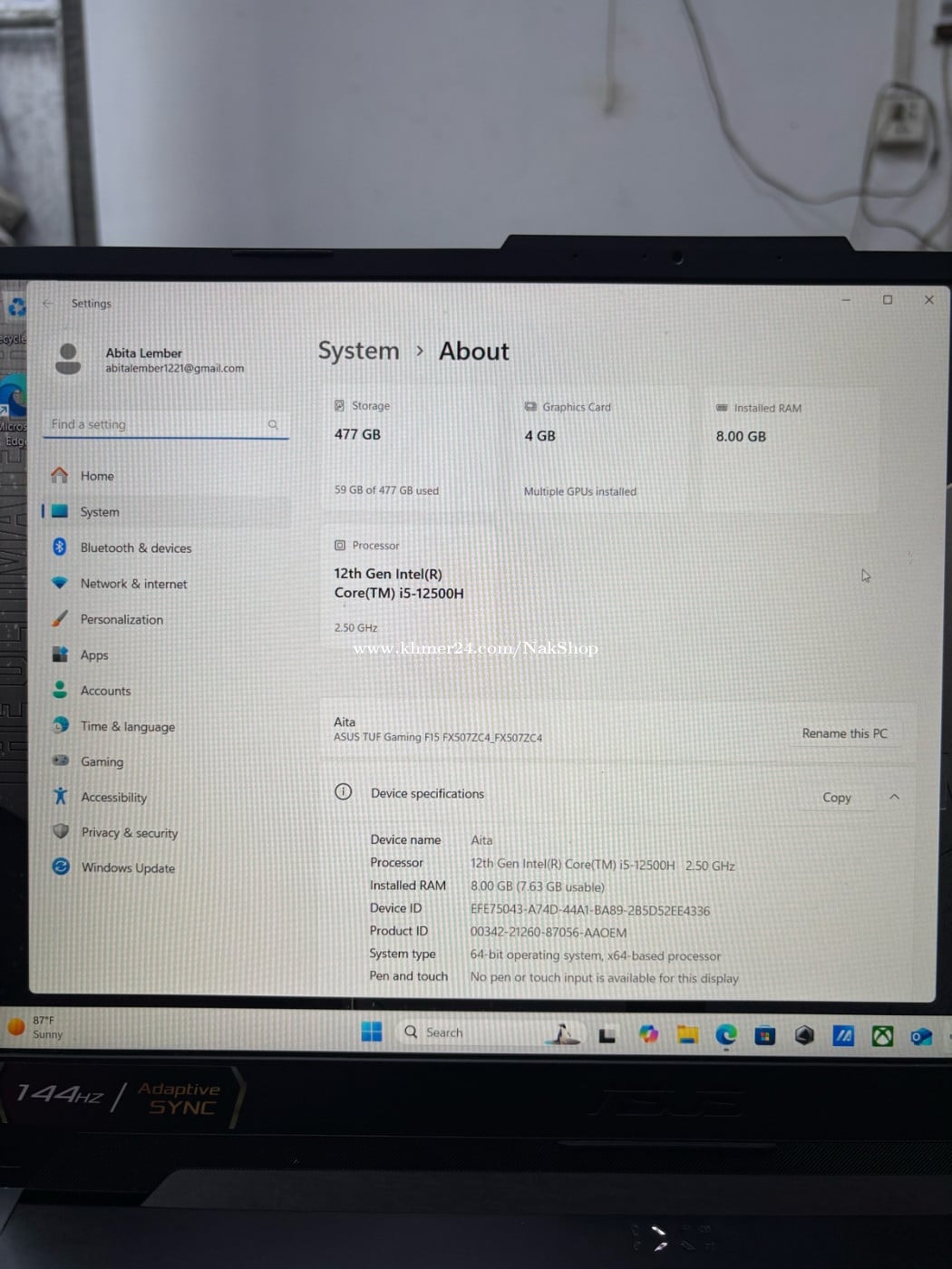Labtop ASUS TUF Gaming F15 Core(TM)i5 12th Gen Ram8G HDD512G 144hz