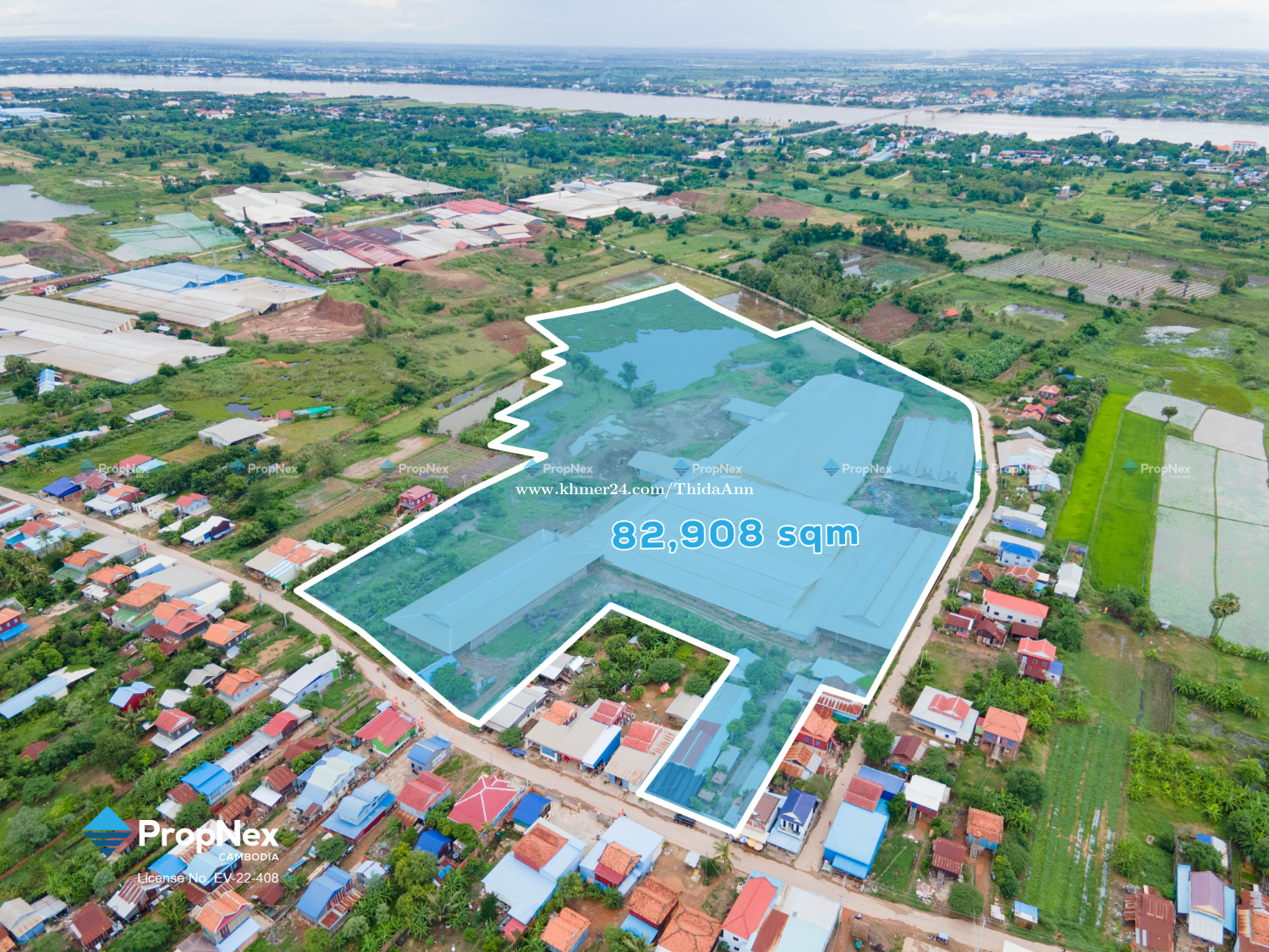 ដីនិងឃ្លាំងសម្រាប់លក់ Land for Sale Near Prek Ta Meak Bridge – Kandal Province Special Price – Perfect for Industrial, Commercial, or Future Investment This large land parcel with warehouses is located near Prek Ta Meak Bridge, Kandal Province, in a fast-growing area ideal for industrial use, logistics, commercial complex, housing development, or land banking investment. With two road frontages, the site provides excellent accessibility, exposure, and development flexibility. ⸻ 📍 Location: Near Prek Ta Meak Bridge, Kandal Province ✅ Title: Hard Title (LMAP) 📐 Land Size: Approx. 82,908 sqm (8.2 ha) 🏞️ Suitable for: Industrial, warehouse, logistics hub, commercial project, housing project, or land banking 🏷️ Special Price: US$55/sqm (Approx. US$4.55 Million) – Below Market Value ⸻ 📞 Contact for Viewing & Information: 📱 Call: 089777xxxClick To Call 💬 Telegram: t.me/Thida_ann 📧 Email: thi******@propnexkh.comClick To Sent Email 🏢 Address: House No 27, Street 294 corner Street 21, Sangkat Tonle Bassac, Chamkamorn, Phnom Penh