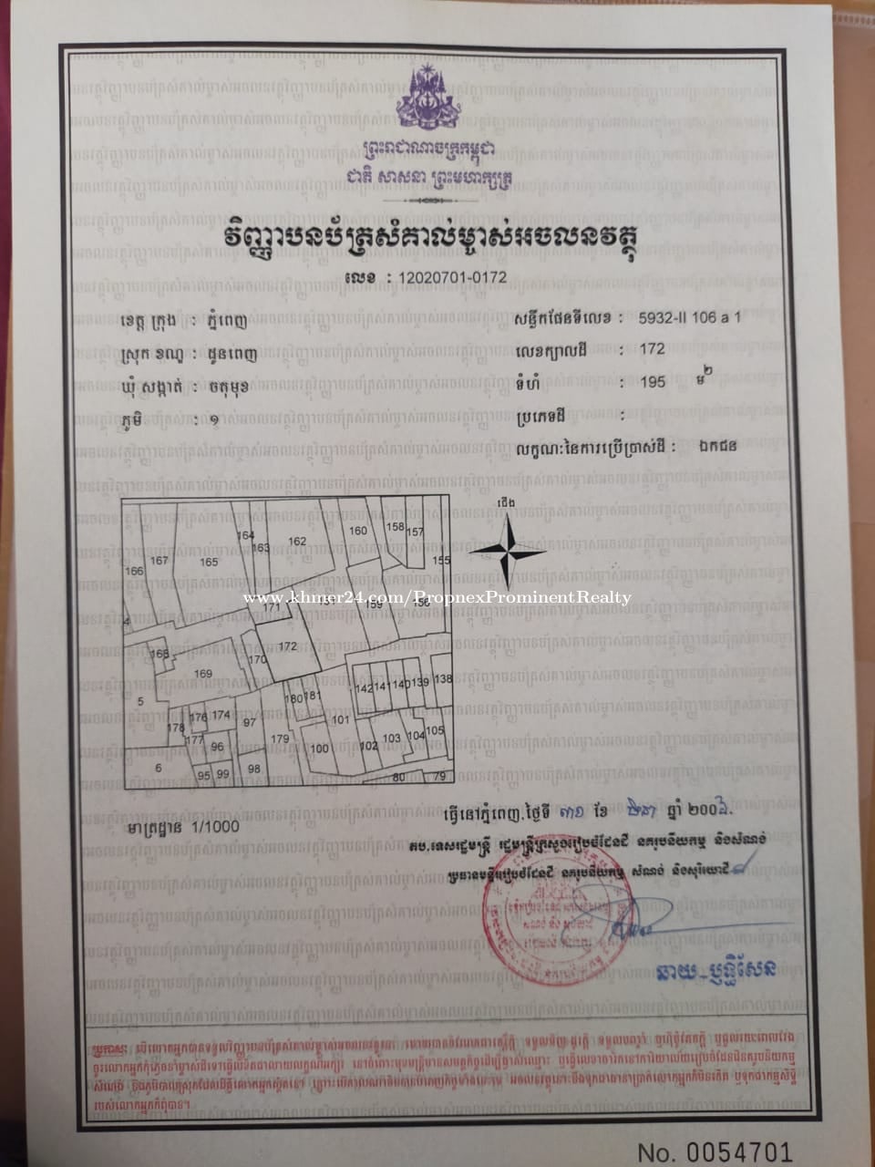 Land and House for Sale in Sangkat Chakto Mukh - Total Selling Price: 682,500$ (negotiable) - Selling Price Per Sqm: 3,500$/m² - Land Size: 195m² - Ownership: hard title deed - Location: Sangkat Chakto Mukh, Khan Daun Penh, Phnom Penh - Contact: 010460xxxClick To Call/ 017740xxxClick To Call - Telegram Link: https://t.me/sao_so_pheak - Whatsapp Link: https://wa.me/message/AMTYCYEPAKYZC1