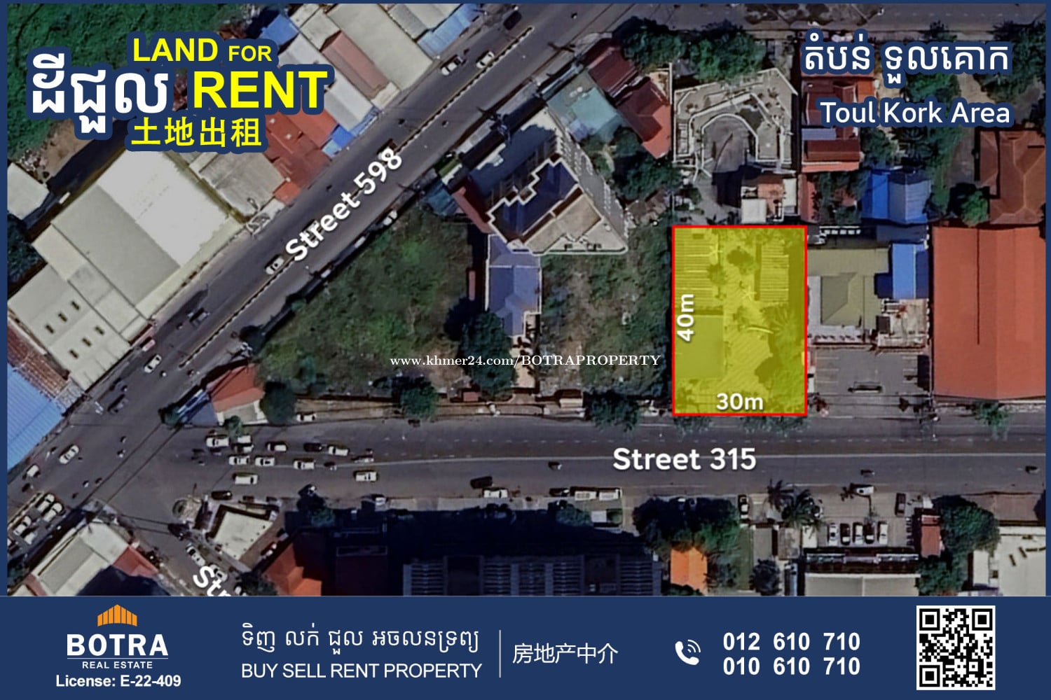 ๐ฃ Land for Rent in Toul Kork #P1351 - Land size: 30m x 40m - Price: $5,000/month โโโโโโโโโ Contact us now ๐ 012610xxxClick To Call (Cellcard) ๐ 010610xxxClick To Call (Smart) โถ๏ธ t.me/BotraRealEstate (Chat)