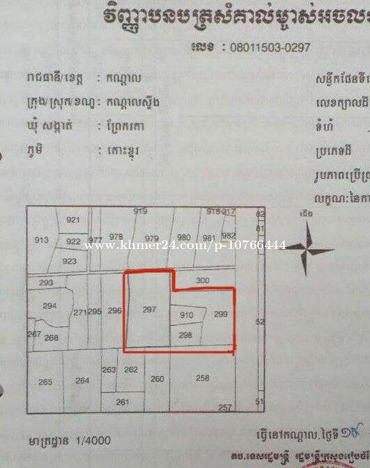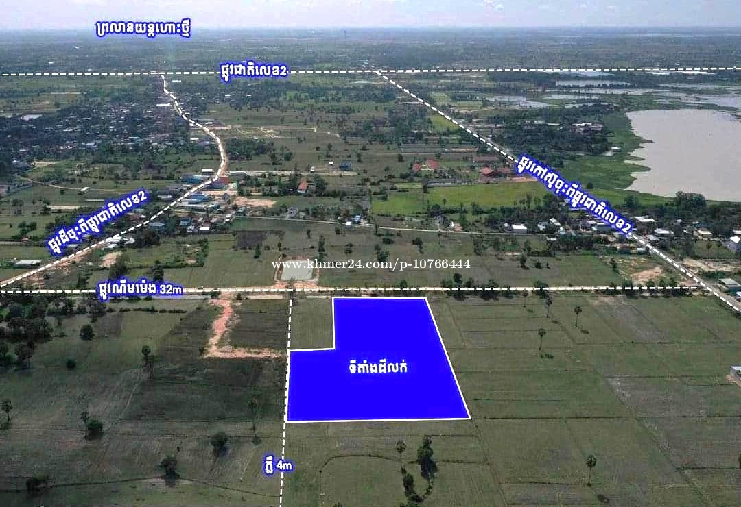 Land for Sale on Concrete Road in Development Area • Selling price : US$75/m2 (negotiable) • Land size : 13,419m2 (Hard title deed) • This land is on main road in development area • Good land Sharpe • Electricity & water • Many accessible roads to road No. 2 & road 104, near New Phnom Penh Airport • Good land for investment such as building warehouse/factory, subdivided land or other.. • Location on Street Neom Meng (wide 32m) • Prek Roka Commune, Kandal Stueng District, Kandal Province. Tel: 012558xxxClick To Call (Telegram)