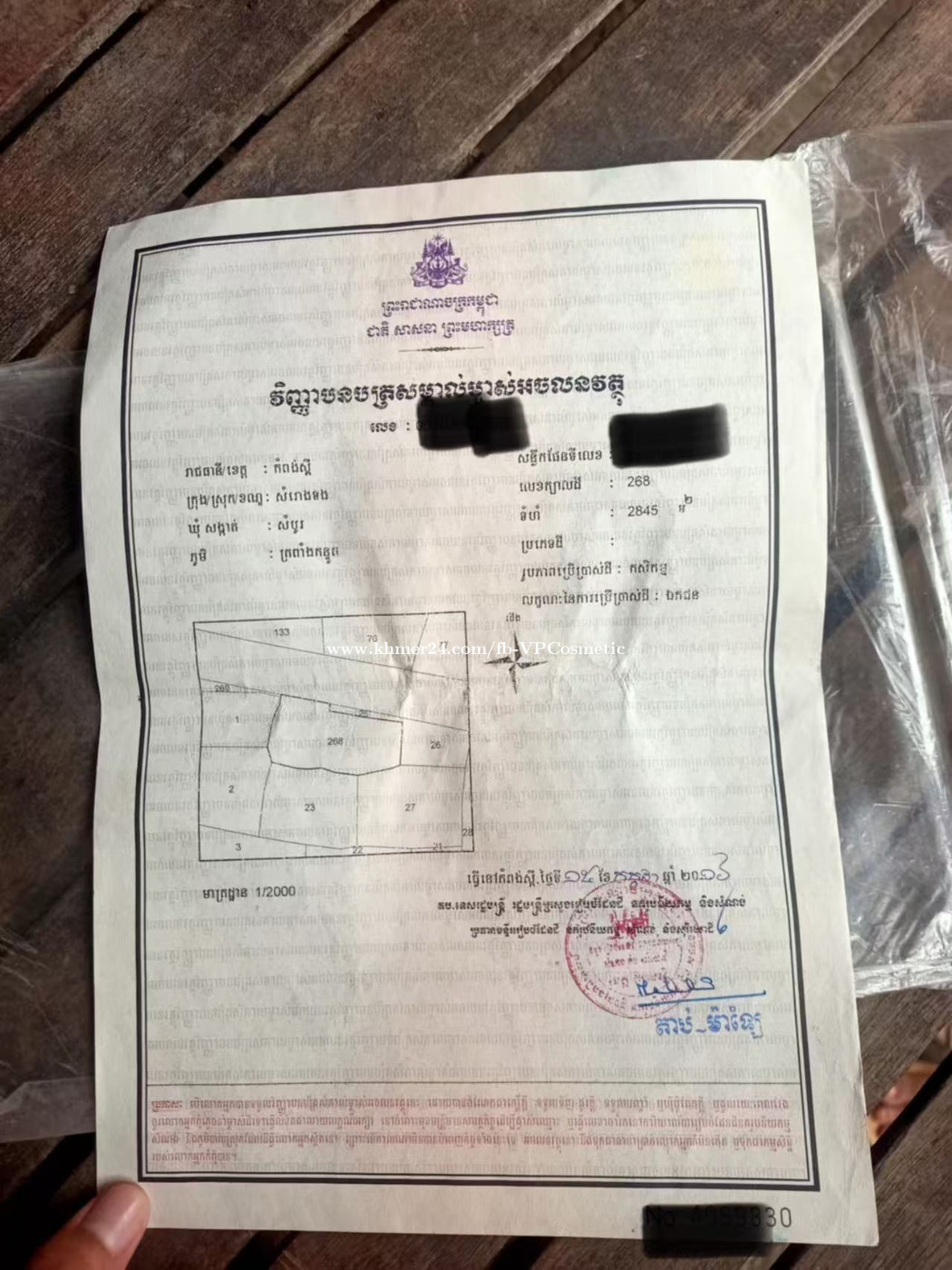 ដីលក់ បន្ទាន់ មានផ្ទះលំហែ និង ដំណាំពេញដី ប្លង់រឹង តំលៃត្រឹមតែ 195000$ ចរចារ ទីតាំងនៅវត្តអង្គខ្មៅ ផ្លូវ51