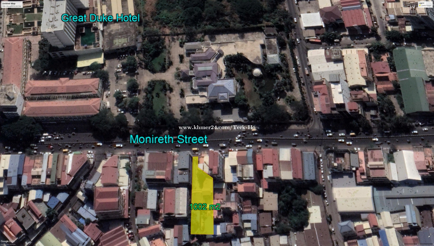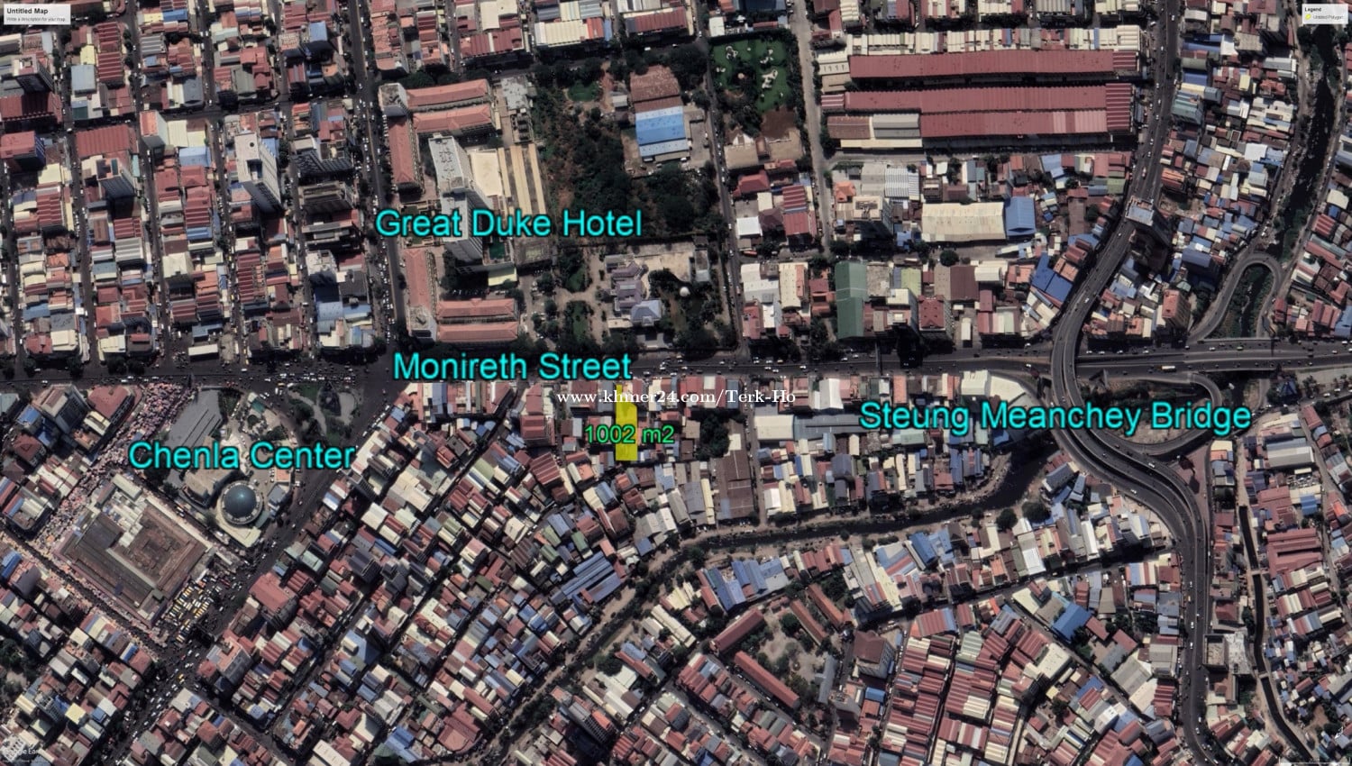 ● ដីសំរាប់លក់ ● ដីនៅលើផ្លូវមុនីរ៉េត (217) ចន្លោះសណ្ឋាគារ Great Duke (អតីត Intercontinental) និងស្ពានស្ទឹងមានជ័យ ● ទំហំ 1002 ម៉ែត្រការ៉េ (3500 usd/m2) ● មានផ្ទះវីឡាក្មុងដីស្រាប់ ● ជាតំបន់ទីប្រជុំជនច្រើន មានធនាគារ សណ្ឋាគារ សាលារៀន ផ្សារដើមគរ ផ្សារនាគមាស ផ្សារអូឡាំពិក និងទីតាំងពាណិជ្ជកម្មសំខាន់ផ្សេងៗទៀត ● ប្លង់រឹង Lmap ● 016222xxxClick To Call (telegram)