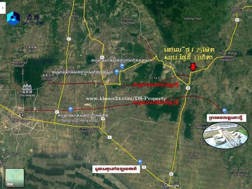 ដីលក់ជាប់ផ្លូវជាតិលេខ64 នៅជិតប្រលានយន្តហោះថ្មីសៀមរាប - តម្លៃ 35ដុល្លា/m2 (11,547,000$) - ទំហំដី 329 914m2 - 33ហិចតា - មាន ប្លង់រឹង - លុយជេីងសារអាចនិយាយគ្នាបាន ទីក្រុងថ្មីសៀមរាបកំពង់តំណេីរការហេីយ ដីដែរល្អតម្លៃសម្យរម ទីតាំងល្អ សម្រាប់ព័ត៌មានបន្ថែម: Metfone 0717327xxxClick To Call Celcard 011520xxxClick To Call Smart 0963686xxxClick To Call https://t.me/WMautoestate