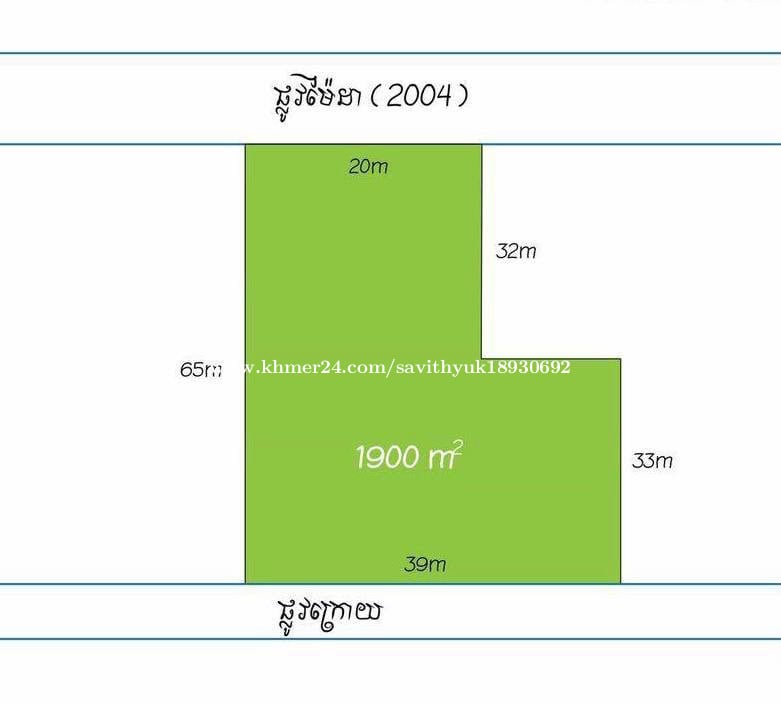 ដីនៅលើផ្លូវ២០០៤ ត្រូវការលក់បន្ទាន់ខ្លាំង - ទំហំដី: 1900m2 ( ផ្លូវមុខក្រោយ ) - តម្លៃ: 1550$/m2 ចរចារ - ប្លង់រឹង - អាចសាងសង់បានគ្រប់ប្រភេទអាគារ ខុនដូ អាផាតមិន មន្ទីពេទ្យ សណ្ឋាគារ ឃ្លាំង ។ល។ - ទំនាក់ទំនង: 085777xxxClick To Call - telegram: https://t.me/SavithYuk