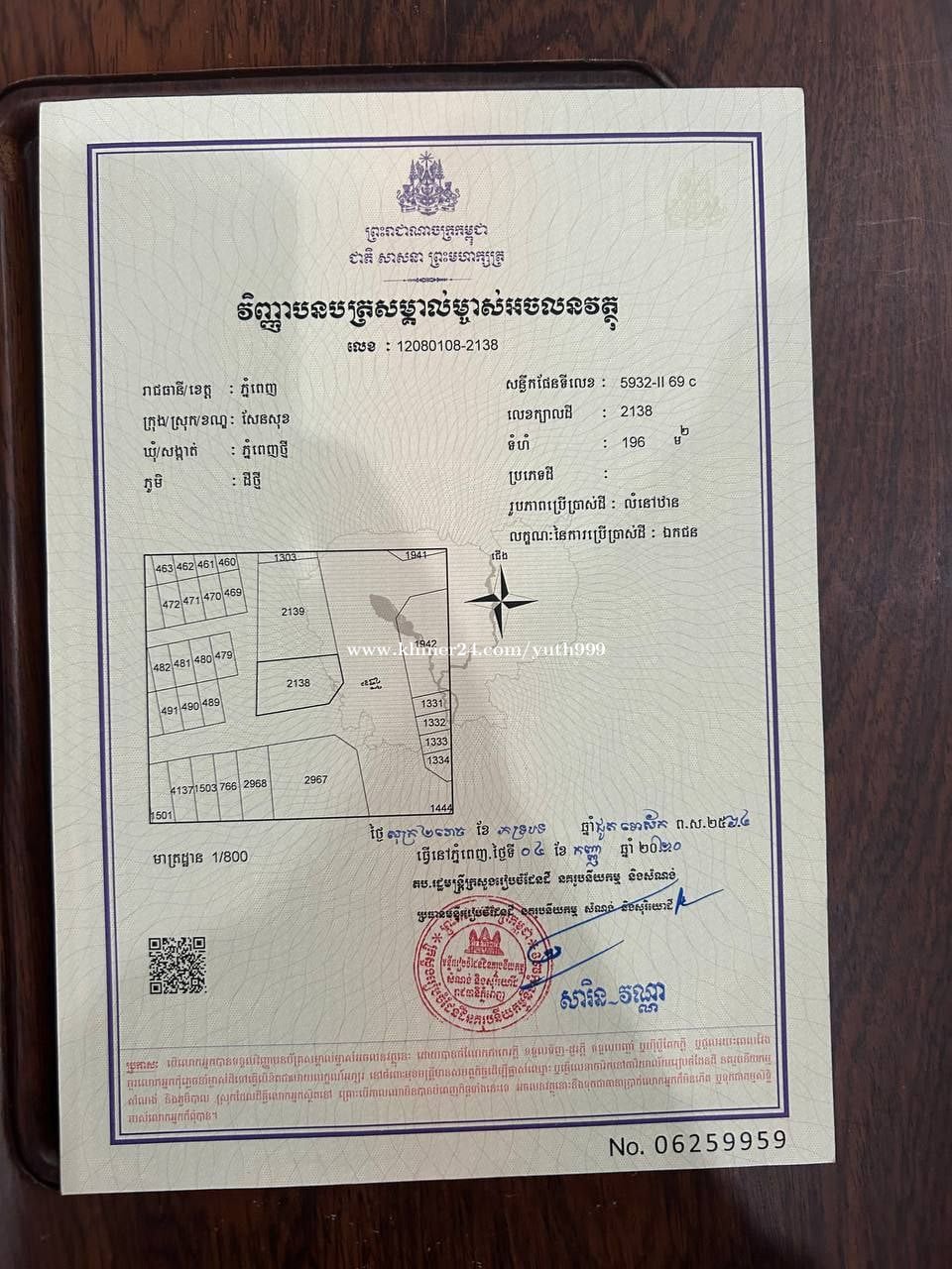 ដីលក់ ទទឹង: 10 បណ្ដោយ: 23 តម្លៃ: 20 5000 USD Tel: 0963919xxxClick To Call 099588xxxClick To Call