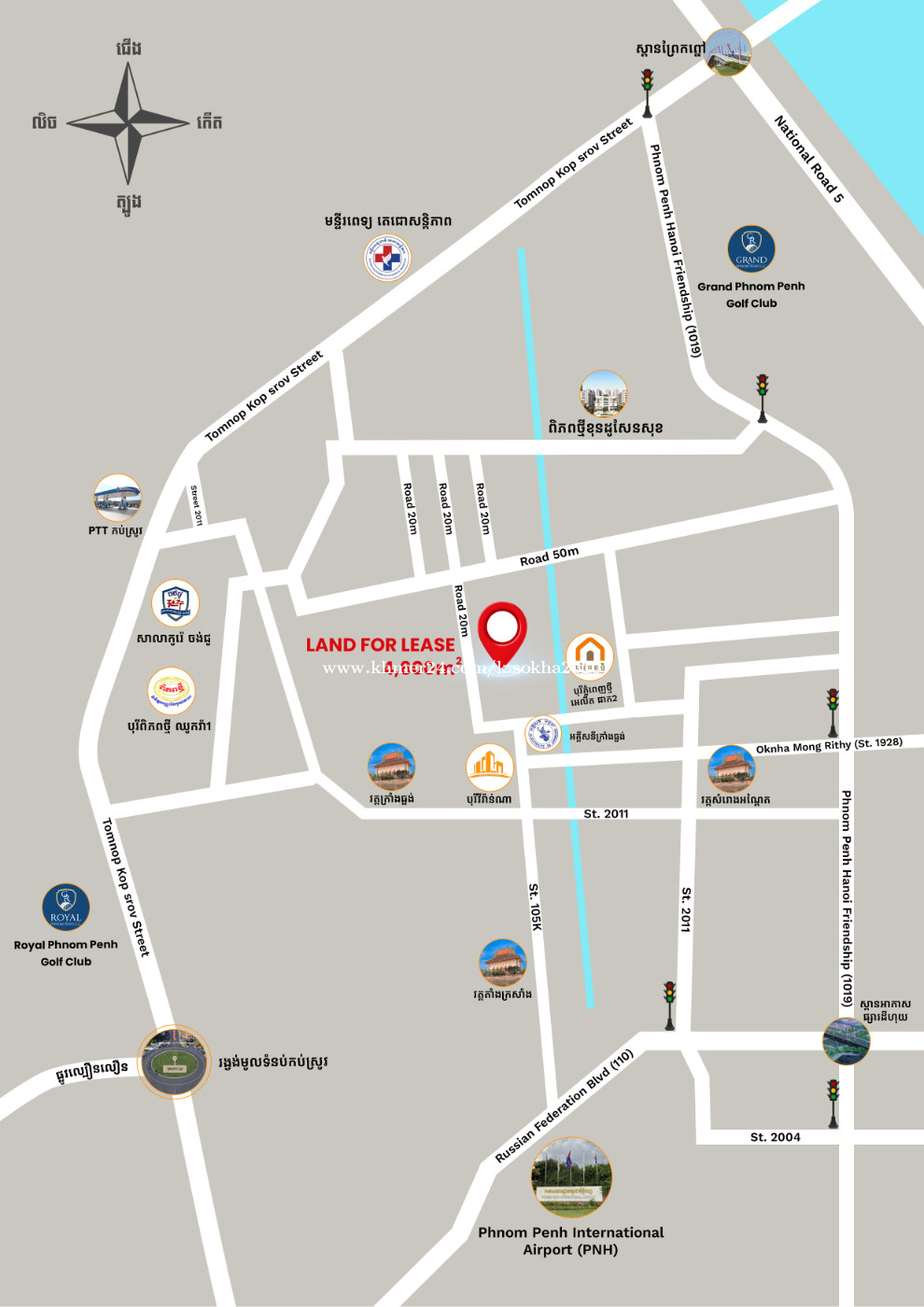 We are pleased to announce the lease of a strategically located plot of land for warehouse development. It's along a main road (20-meter-wide), this property can access to major routes (50-meter-wide) and national highways, ensuring smooth transportation of goods and heavy materials. This location is ideal for logistics operations, with infrastructure that supports efficient loading, unloading, and distribution activities. - 3.4km from Kopsrov Ring Road - 7km from National Road5 - 5km from Express way SHV-PP - 7km from National Road4 - 5km from Airport Lease Price: $1/m2 Location: Krang Thnorng Area, Sensok Commune, Phnom Penh https://maps.app.goo.gl/PWrPWxdYnPgCBnfN9 For inquiries or further details, please contact: Phone/Telegram: 016811xxxClick To Call / 095777xxxClick To Call