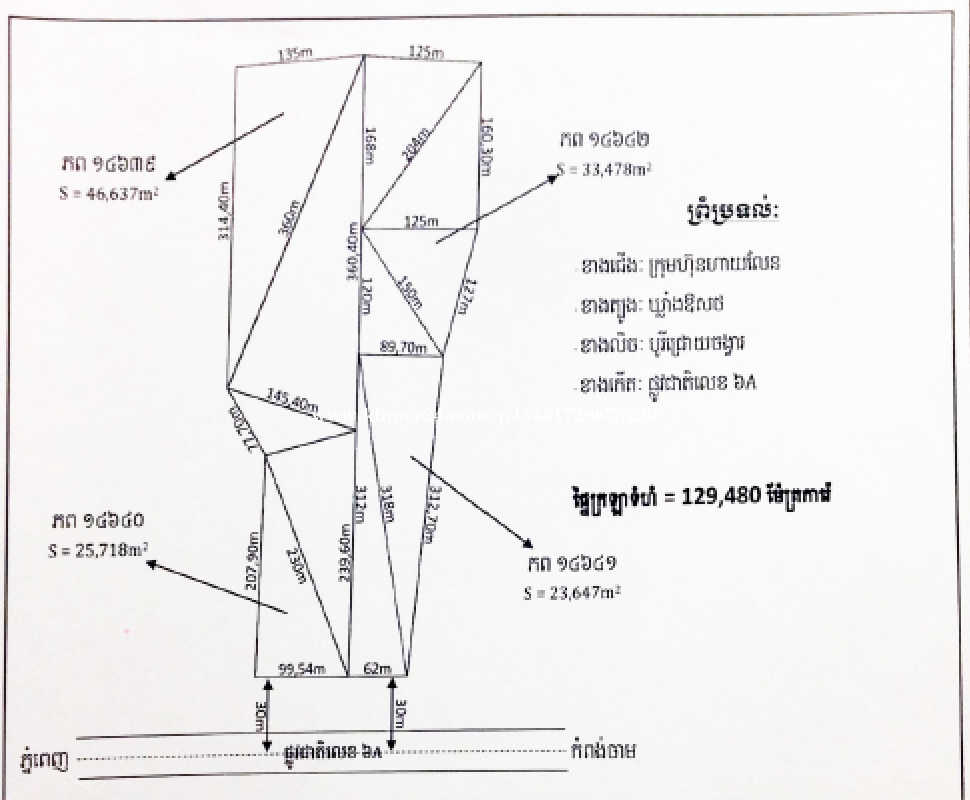 • Location: Phum Kdey. Sangkat Bak Khaeng, Khan Chroy Chong Va, Phnom Penh. • Site Area: 129,480 sqm • Price: US $ 220 per sqm • Title: Land • Location Map: https://shorturl.at/WgjgS