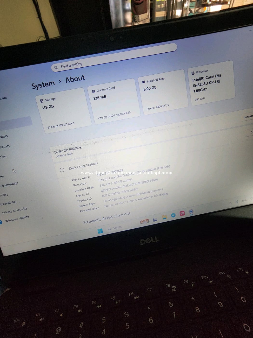 Laptop Dell Latitude 3400 CPU core i5 ជំនាន់ 8 Ram 8GB SSD 128GB ( មានស្លតអាចដាក់ M2បានទៀត ) ថ្ម កាន់ភ្លើងល្អ បញ្ជាក់រាងស្ទើរតួរដូចរូប...ទីតាំងនៅជិតស្ពាននាគ ខេត្តសៀមរាប....