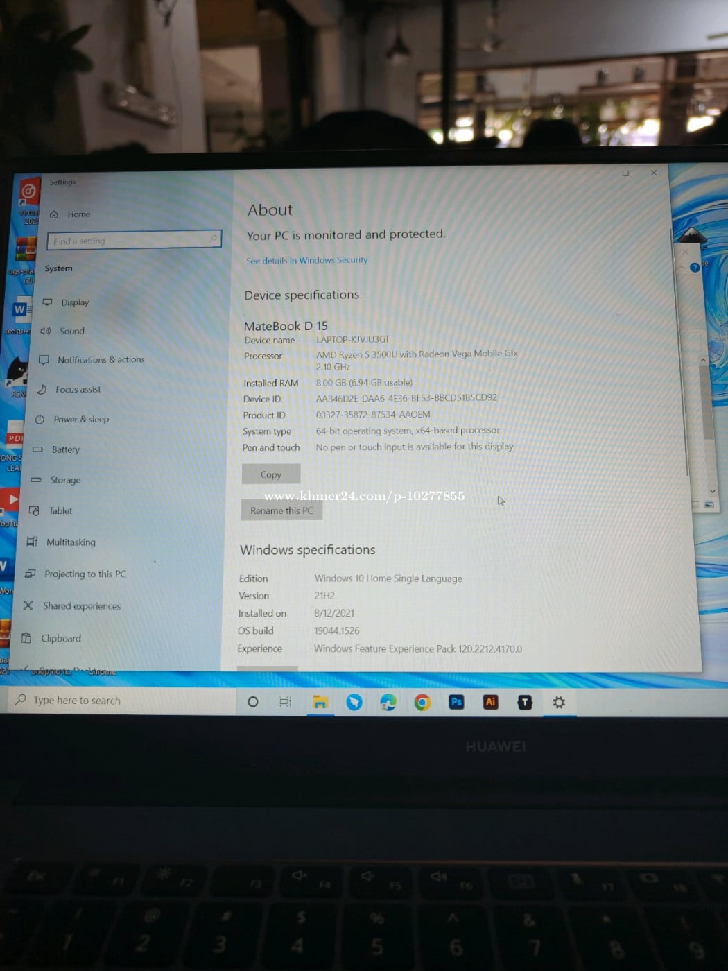 Laptop Huawei D15 97% នៅស្អាតទុកចោលមិនដែលប្រើ Tell 010277xxxClick To Call Telegram 010277xxxClick To Call