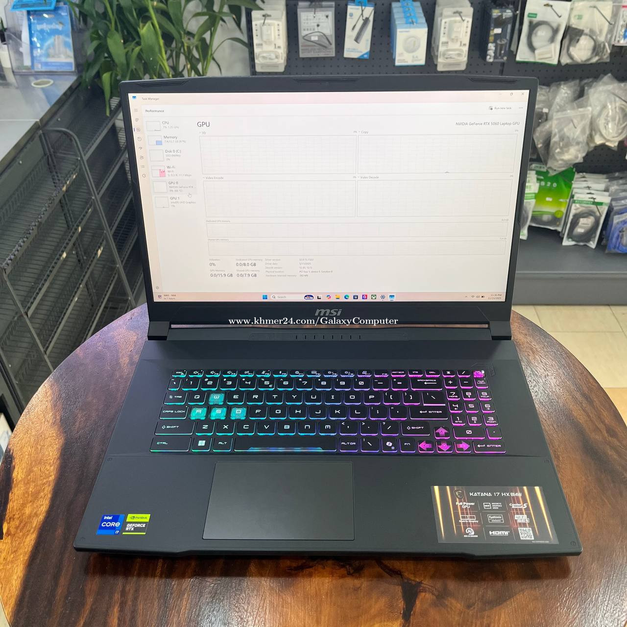 Laptop MSI Katana 17 HX B14WFK-040KH GAMING NEW ថ្មីប្រអប់ តម្លៃសមរម្យ មានធានាត្រឹមត្រូវ អាចប្រើបាន ជាមួយការសិក្សាទូទៅ លេងហ្គេម , Design, video Editing, IT, គូសប្លង់ -Core™ i7- 14650HX (24CPUs) -RAM 16GB DDR5 -SSD M2 PCIE 1TB -VGA Intel UHD Graphics -VGA NVIDIA RTX™ 5060 GDDR7 8GB -Screen 2K 17.3" (2560*1440) 240Hz P3 100% typical - Keyboard RGB Gaming -Window License 11 Warrenty 2 year ✅កុម្មង់ភា្លមបានភ្លាម មិនរង់ចាំយូរព្រោះទំនិញមានក្នុងស្តុកស្រាប់ 💁ពត៌មានបន្ថែម សូមទំនាក់ទំនងមកខាងក្រោម៖ 📲Telegram: https://t.me/galaxycomputer168 ☎️Smart: 086603xxxClick To Call ☎️Cell Card: 061603xxxClick To Call ☎️Metfone: 066603xxxClick To Call 📲Telegram Channel: https://t.me/galaxycomputerchannel 📲ទាញយក App : https://galaxycomputer168.com/download 🌍www.galaxycomputer168.com 📍មានទីតាំងស្ថិត អាគារលេខ 664-666 មហាវិថីកម្ពុជាក្រោម រាជធានីភ្នំពេញ https://goo.gl/maps/d2ZaXumJkrLesA6h7