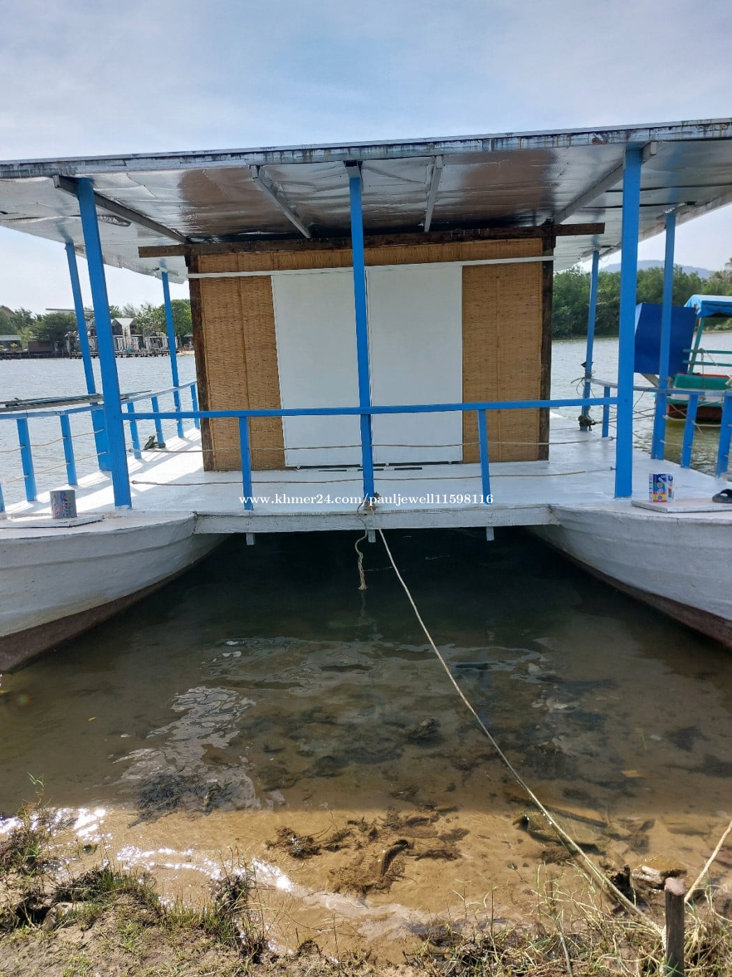 House boat fish island khampot 14mtrs long 6mtrs wide acomadaion 4.5x4.5 mtrs full thermal insulation very cool 60 sq mtr sun deck/ roof both hulls new fiberglass 1 month ago good for 25 yrs plus epoxy decks with deck drains automatic bilge pumps electric to uk standard (with earth) stairs to sun deck at stern there no engine she is the live on unlike land house you own this one 100% no interference or agro from a third party the mooring is great and hard to come by monthly fee 100 dollers includes electric/ water /fast Internet/ and 24/7 security it's peaceful and safe viewing by appointment contact paul email zig*********@aol.comClick To Sent Email or telegram/what's app 010896xxxClick To Call thanks paul ps I fish from sun deck it's fab .ps for serious people there will be negotiation!!!