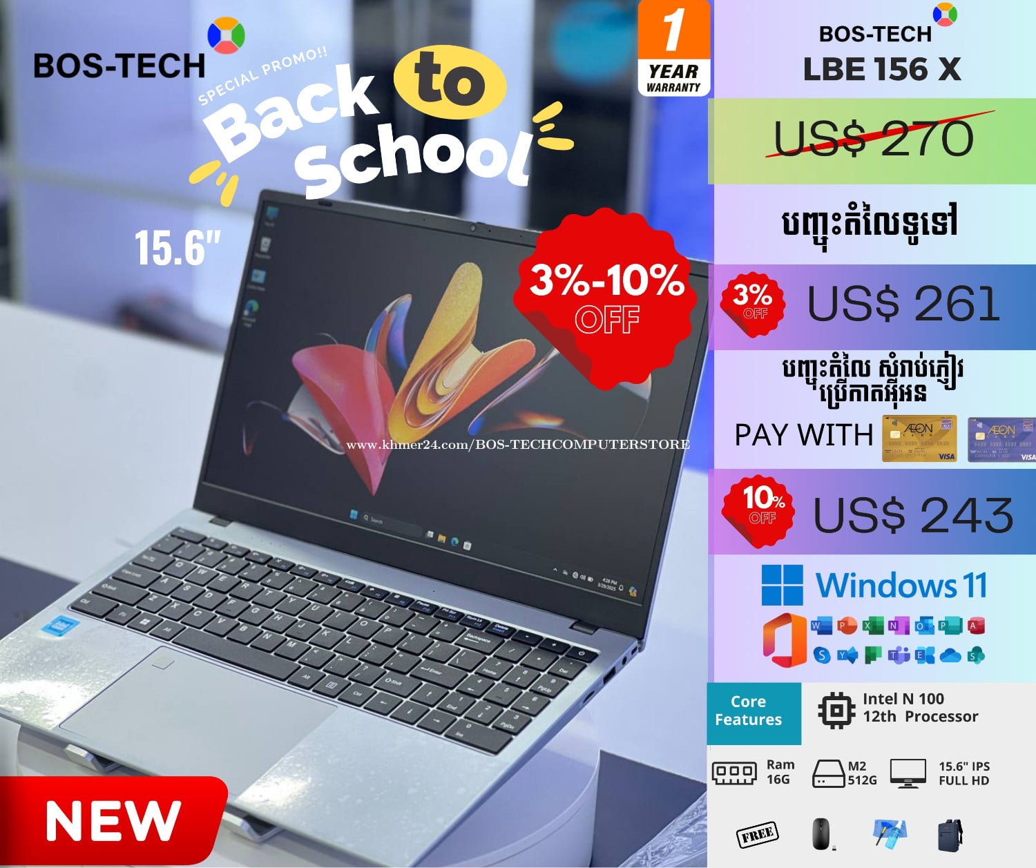 ❤ស្វាគមន៏ ម៉ូឌែល Laptop ថ្មី MODEL LBE156X (15.6 អុីញ) 👉CPUជំនាន់ទី១២ ផលិតឆ្នាំ2025 Intel® Processor N100 6M Cache, up to 3.40 GHz Ram 16G DDR4 និង M2 512G 👉WINDOW 11 license (lifetime) 👉Microsoft office 2021 license (lifetime) 👉ជាមួយនឹងការCustomize រូបរាងស្អាតពិសេស 👉 Resolution 1920 x 1080 អេក្រង់ IPS (FULL HD) 👉ងាយស្រួលប្រើប្រាស់ការងារប្រចាំថ្ងៃ &លេងហ្គេម១ចំនួន --------------------------------------------------------------- 🎁 ថែម កាតាប BOSTECH + flash USB 32G +mouse wireless + TypeC connector +បញ្ចូលកម្មវិធី 🛒Product Code : LBE156X ( 270 USD ) ❤ ធានារយៈពេល 1 ឆ្នាំ (hardware & software) ☎ កម្មង់តាមរយះ Call/inbox/ telegram 069340xxxClick To Call ✈telegram link : https://t.me/btstm2