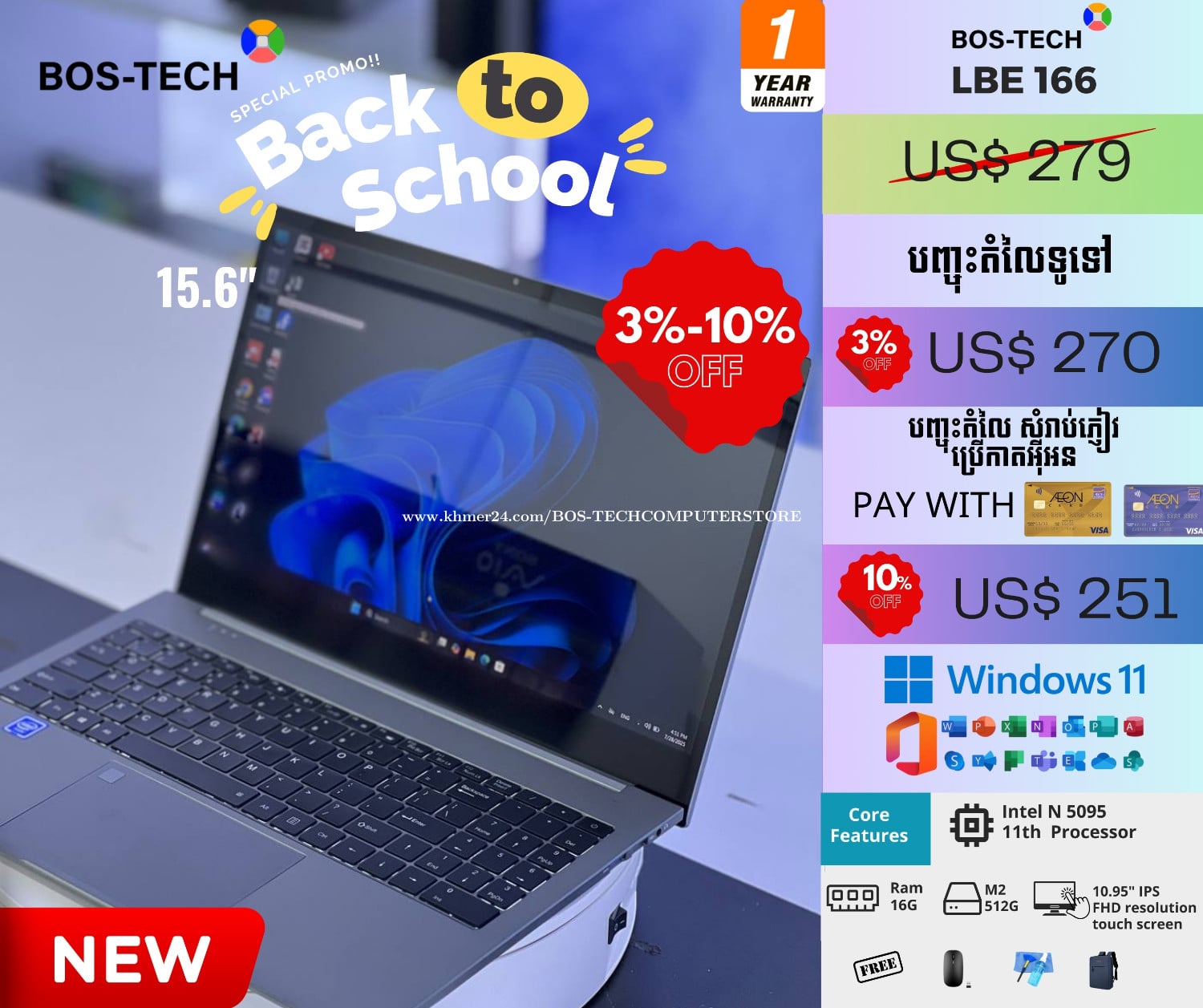 ❤ស្វាគមន៏ ម៉ូឌែល Laptop ថ្មី MODEL LBE166 👉CPUជំនាន់ទី11 Intel® Processor N5095 6M Cache, up to 3.40 GHz Ram 16G និង M2 512G 👉ជាមួយនឹងការCustomize រូបរាងស្អាតពិសេស 👉 Resolution 1920 x 1200 Touch screen 👉ងាយស្រួលប្រើប្រាស់ការងារ ប្រចាំថ្ងៃ ☎នៅចាំអីទៀត សូមទំនាក់ទំនងទិញ 069340xxxClick To Call