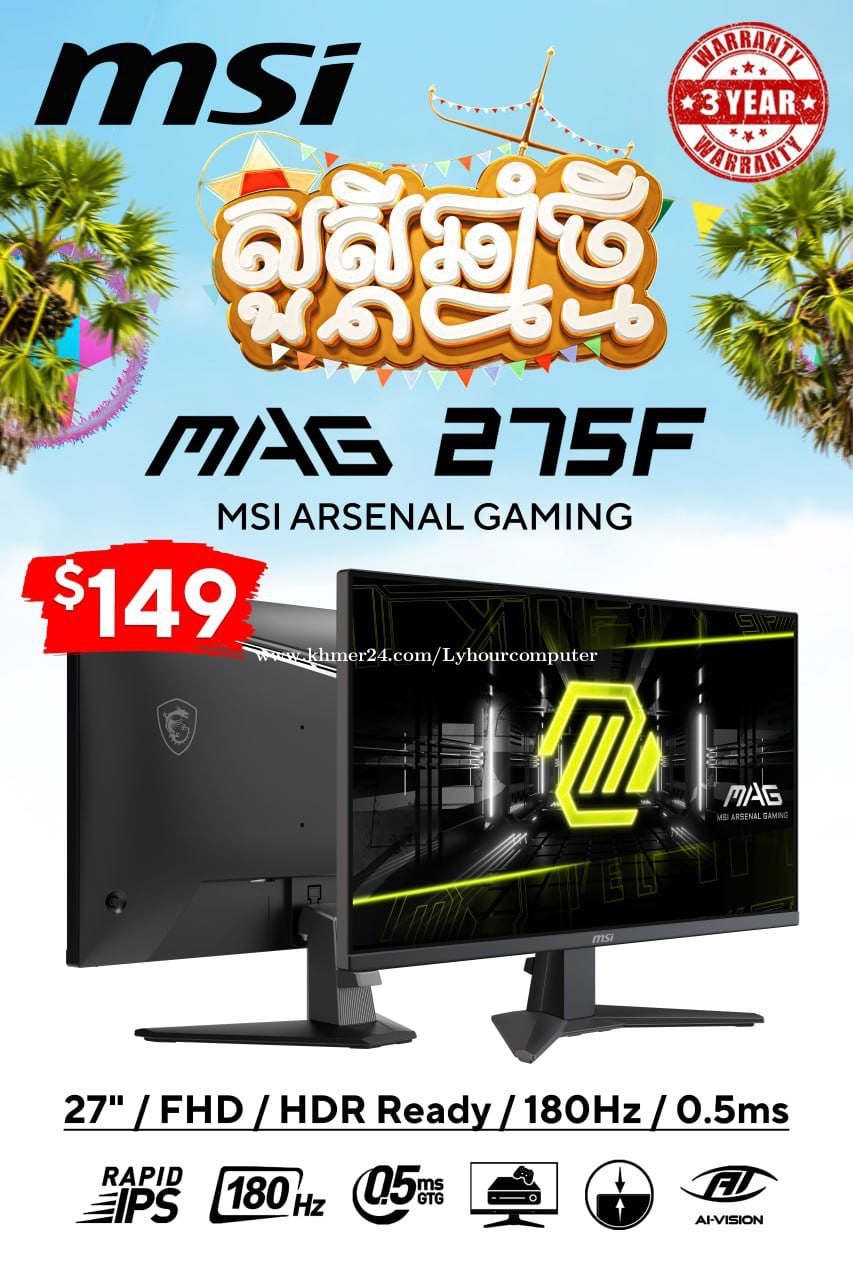 MAG 274F ( 27"" / FHD, Rapid IPS / 200Hz / 0.5ms / HDMI 1x Port, 1x DP / 3 years )" $149