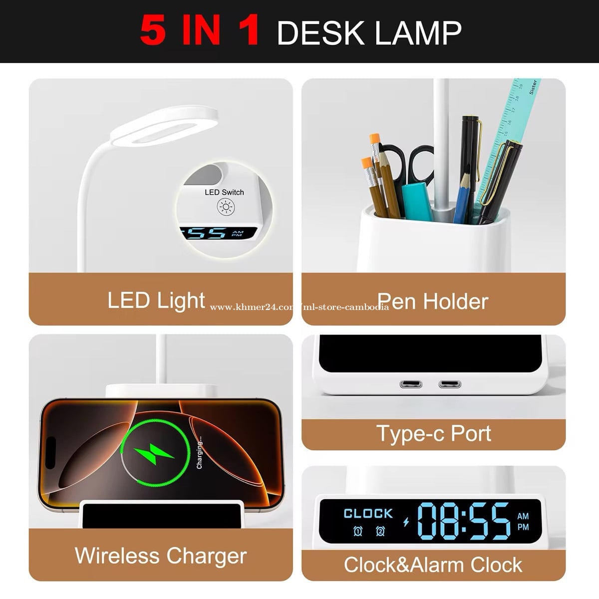 លោកប៉ា អ្នកម៉ាក់មិនគួរមើលរំលង សំរាប់កូនៗ ទុកអង្គុយរៀន ឬ តុការងារ ( តម្លៃ : 18$ ) ទិញមួយបានដល់ទៅ មុខងារ 5 In 1 : ✅ អំពូល LED ប្តូរបាន3ពណ៌ ✅ Wireless Charging 15W ✅ មានម៉ោងមើល & មុខងារ Alarm ✅ មានរន្ធសាក Type C ចំនួន2 ✅ ប្រអប់ដាក់បុិច ឬ សំភារៈរៀន ឬ ការងារ Telegram : https://t.me/Menghak168 #ស្តុកមានពីរពណ៌ #ស #ខ្មៅ #DestLamp #lamp #wirelesscharging #clocks #TypeCFastCharge