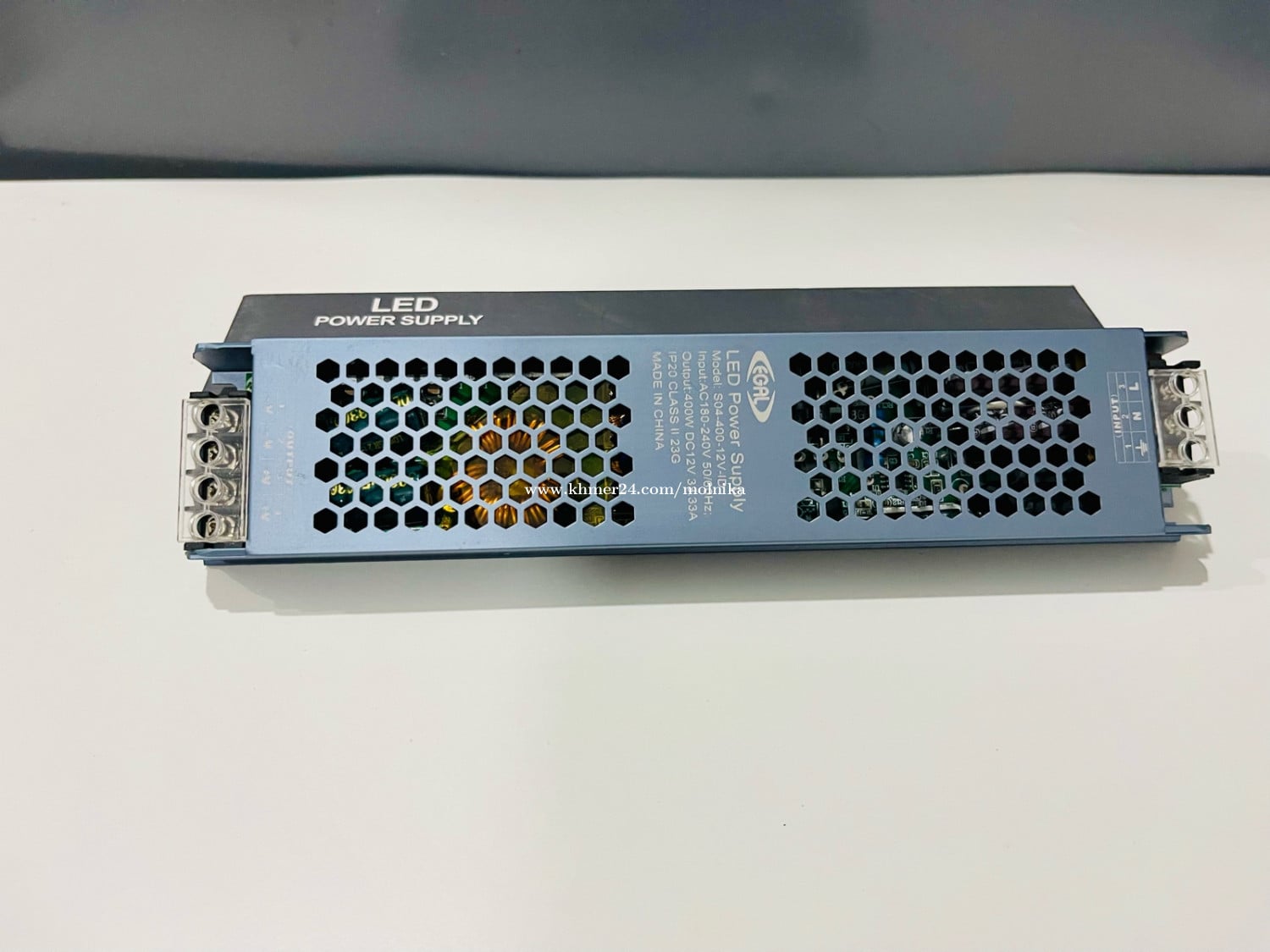 Model: S04-400-ID Input: 180VAC - 240VAC , 50Hz Output: 12VDC , 400W , 33.33A