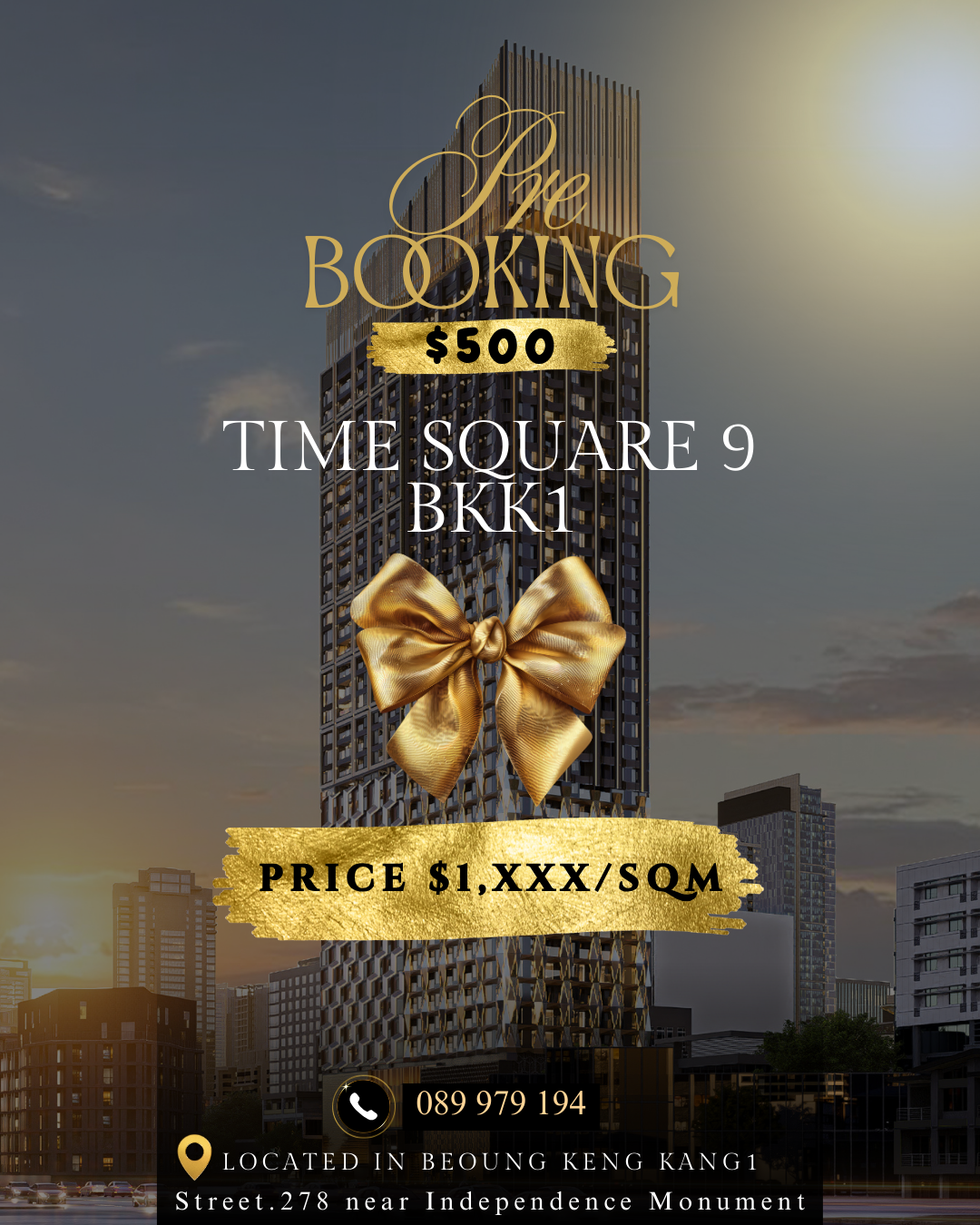 𝐓𝐢𝐦𝐞 𝐒𝐪𝐮𝐚𝐫𝐞 𝟗 នៅតំបន់បឹងកេងកង១ តម្លៃធូរខ្លាំងក្នុង 1ម៉េត្រការ៉េ $𝟏,𝐱𝐱𝐱/𝐦² ($8x,888)