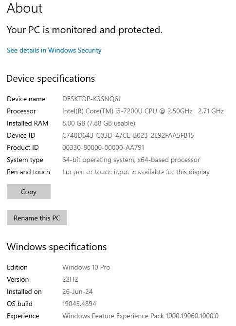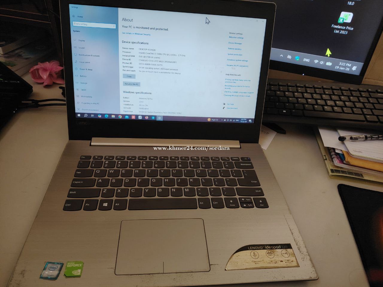 Processor Intel(R) Core(TM) i5-7200U CPU @ 2.50GHz 2.71 GHz Installed RAM: 8.00 GB (7.88 GB usable) System type: 64-bit operating system, x64-based processor No pen or touch input is available for this display Pen and touch Windows specifications: Edition: Windows 10 Pro Battery: ទើបតែដូរថ្មី អាចប្រើបាន 3ទៅ4ម៉ោង