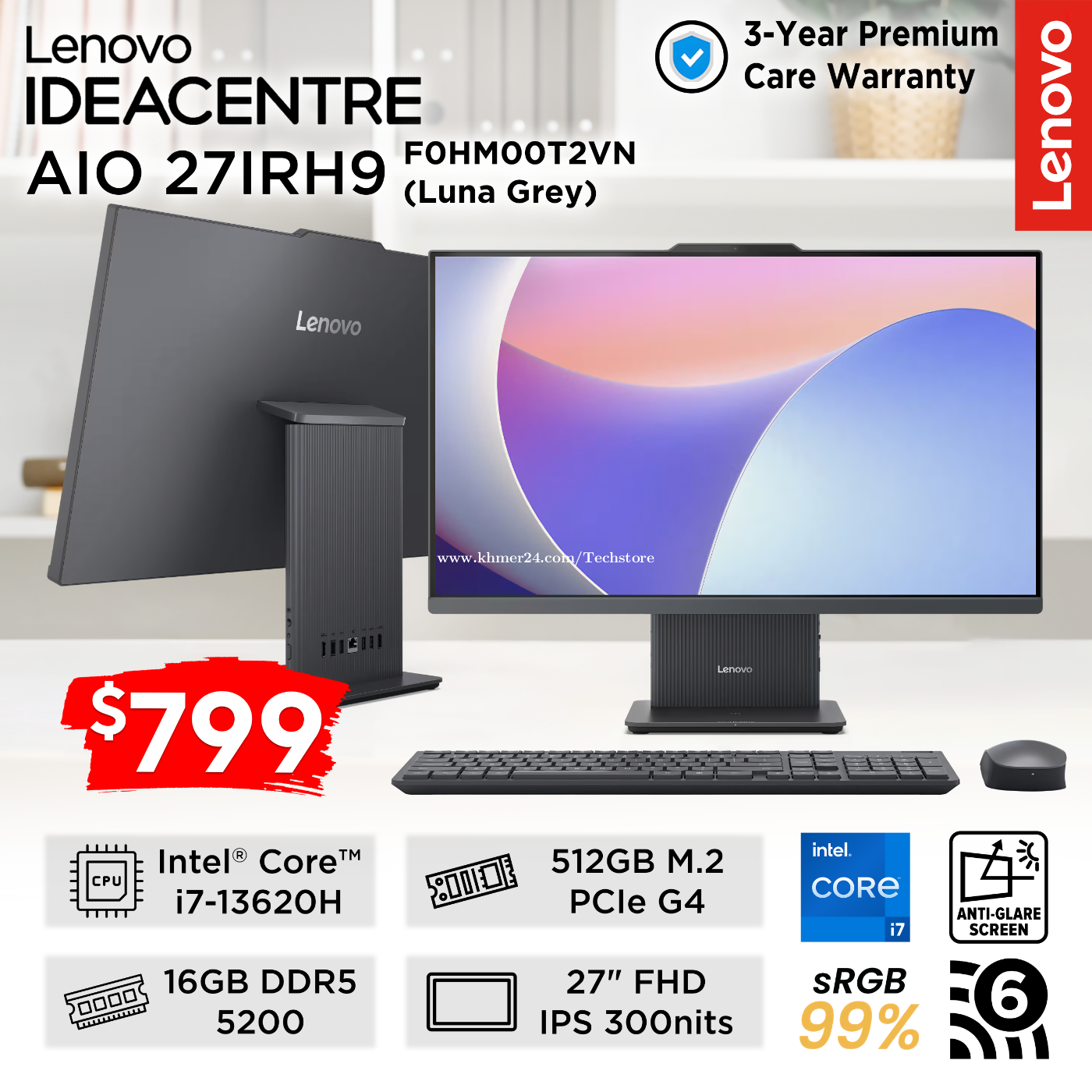 CPU: I7-13620H RAM: 16GB-DDR5 SSD: 512GB GEN4 DISPLAY: 27" IPS, FHD, 100HZ, 99% sRGB WIFI 6, BT5.2