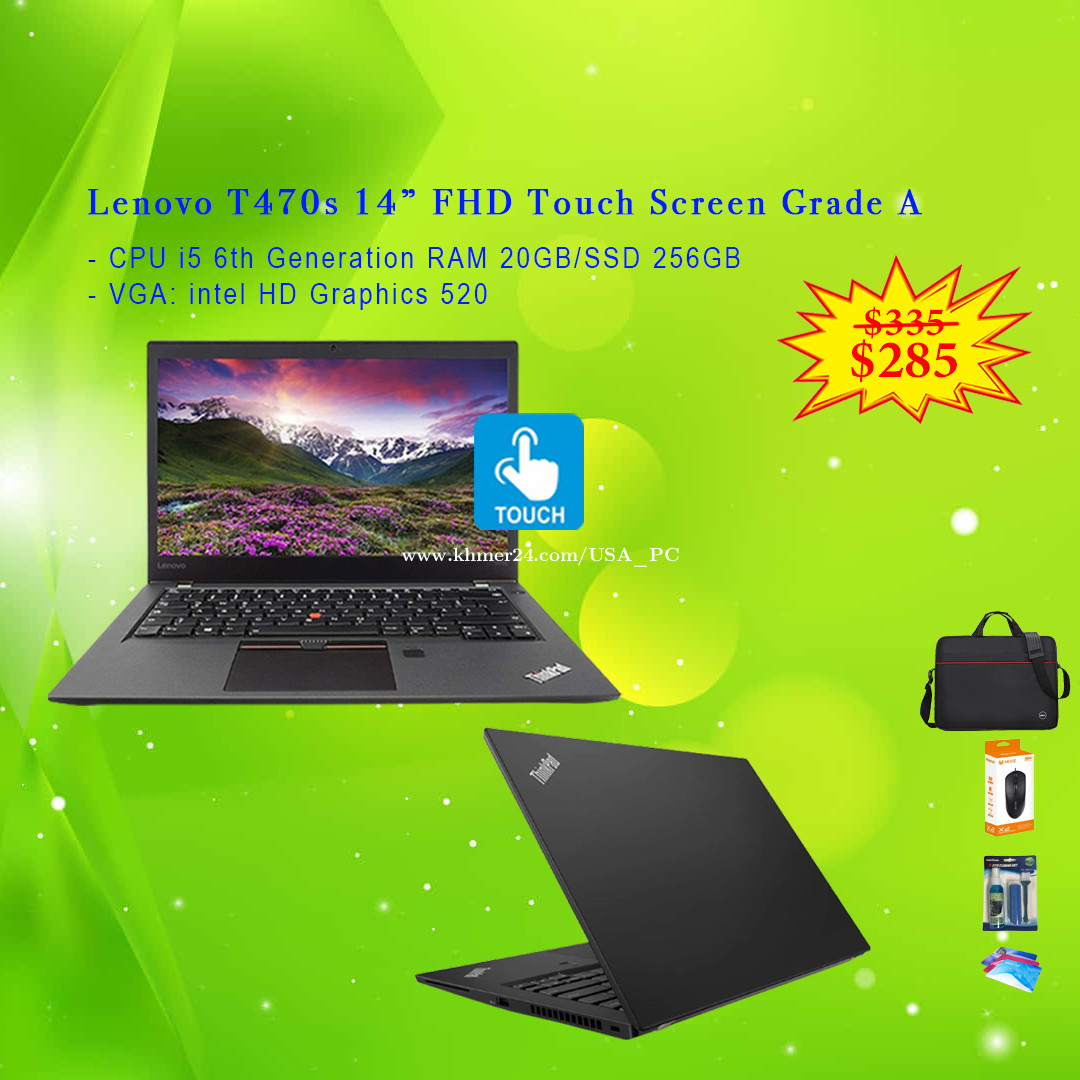 Lenovo ThinkPad T470s TouchScreen FHD 14-inch Core i5 6th RAM 20GB SSD 256GB VGA intel UHD