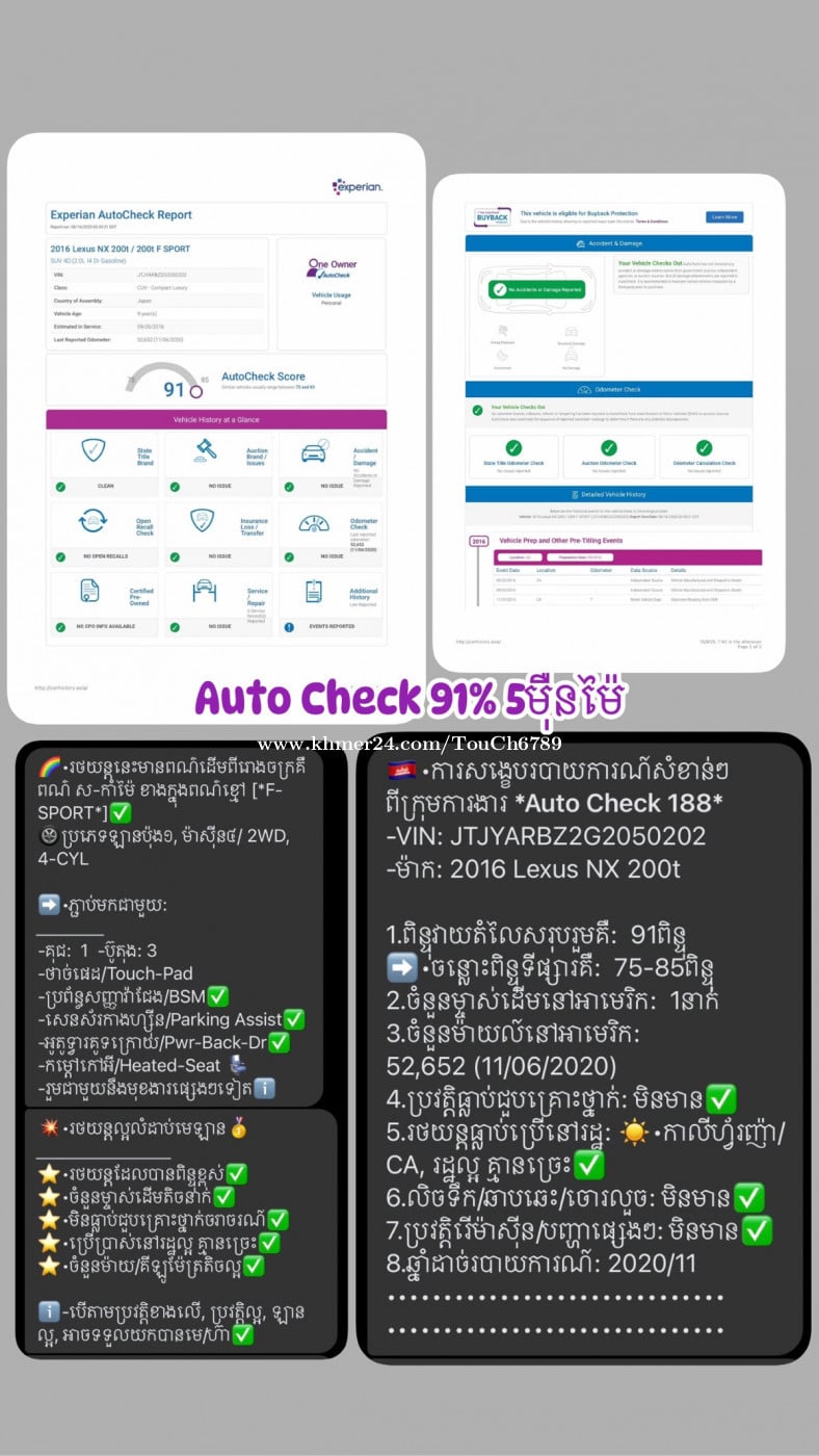 ❖ ម៉ាករថយន្ត: Lexus Nx200t F-sports (ម្ចាស់ដេីមទី1) ❖ លក្ខណះពិសេស: ប៉ូតុង3 គុជ3 ប៉ុង1 ❖ ឆ្នាំ ផលិត : 2016 (ទឹកថ្នាំហ្សុីនមួយជុំ) ❖ ពណ៌ : ស / ពណ៌ក្នុង : ខ្មៅ ❖ តម្លៃពិសេស : 40,500$ $ ចរចា ❖ ប្រភេទប្រេង : សាំង V4 2.0L Turbo ❖ ស្ថានភាពឡាន: ស្លាកលេខភ្នំពេញ 2BR-8797 👉Free✅ ប្តូរប្រេងម៉ាសុីន, បង់ពន្ធផ្លូវ2026, ឆៀកថ្មី, ត្រចៀកក្ដោបauto, សំបកកង់2024ថ្មី4គ្រាប់, កំរាល់ជេីងVIP, កំរាលតាបឡូរ 👉ធានាឡានអត់បុកអត់ច្រេះអត់កាត់តអត់ស្ងោរប្តូរពណ៌💯 👉សរសេលិខិតធានាម៉ាសុីនប្រអប់លេខ1ខែ 👉 Auto Check ជាប់ 91%, 5មុឺនម៉ៃ ឡានកាលី ប្រេីតែមួយម្ចាស់ លំដាប់មេឡាន🏅 👉ចូលរួមមុន(30%)អត់ឆែកCBC, អ្នកខូចCBC ក៌អាចរំលស់បាន 👉រំលស់ជាមួយធានាការប្រាក់ចាប់ពី(0.75%)ឡេីងទៅ.. (មានរំលស់-ទិញលក់-វ៉ៃប្តូររថយន្ត25ខេត្តក្រុងឯកសារងាយៗ) ———————————————— 🔥 សម្រាប់រូបភាពនិងព័ត៌មានលម្អិតអាចទំនាក់ទំនងតាមលេខទូរស័ព្ទទាំងពីរខ្សែខាងក្រោមបាន ☎️ទំនាក់ទំនងទូរស័ព្ទលេខៈ 092585xxxClick To Call Cellcard 087364xxxClick To Call Smart Telegram: https://t.me/vitouchor36