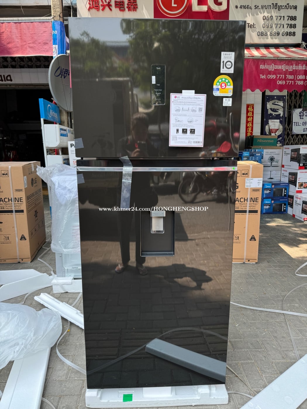 - មានលក់នៅហាង ហុងហេង# 416Eo st.274 ( ផ្លូវព្រះសីហនុជិតផ្សារអូឡាំពិក ) -Tel : 069771xxxClick To Call, 099771xxxClick To Call, 0888896xxxClick To Call ( Telegram ) 011734xxxClick To Call ( Line, Viber & we chat ) -ជាទូរទឹកកកទ្វារ2 ថ្មីកំពស់( 1,790),ទទឹង( 0,912)ជំរៅ( 0,717)ជាទូរទឹកកកដែលស៊ីភ្លើងតិចទំហំទូលាយនិងមានចំណុះ546លីត្រ។ -LG 2 Doors -Inverter Linear Compresser 546L(W700xH1720xD700-Multi Air Flow -មានការធានារយៈពេលមួយឆ្នាំលើគ្រឿងបន្លាស់និងសេវាជួសជុលនិងគ្រឿងបន្លាស់ខមប្រេះសររយះ10ឆ្នាំ។ -1year warranty on repairing service and spare parts.For more detail please contact us