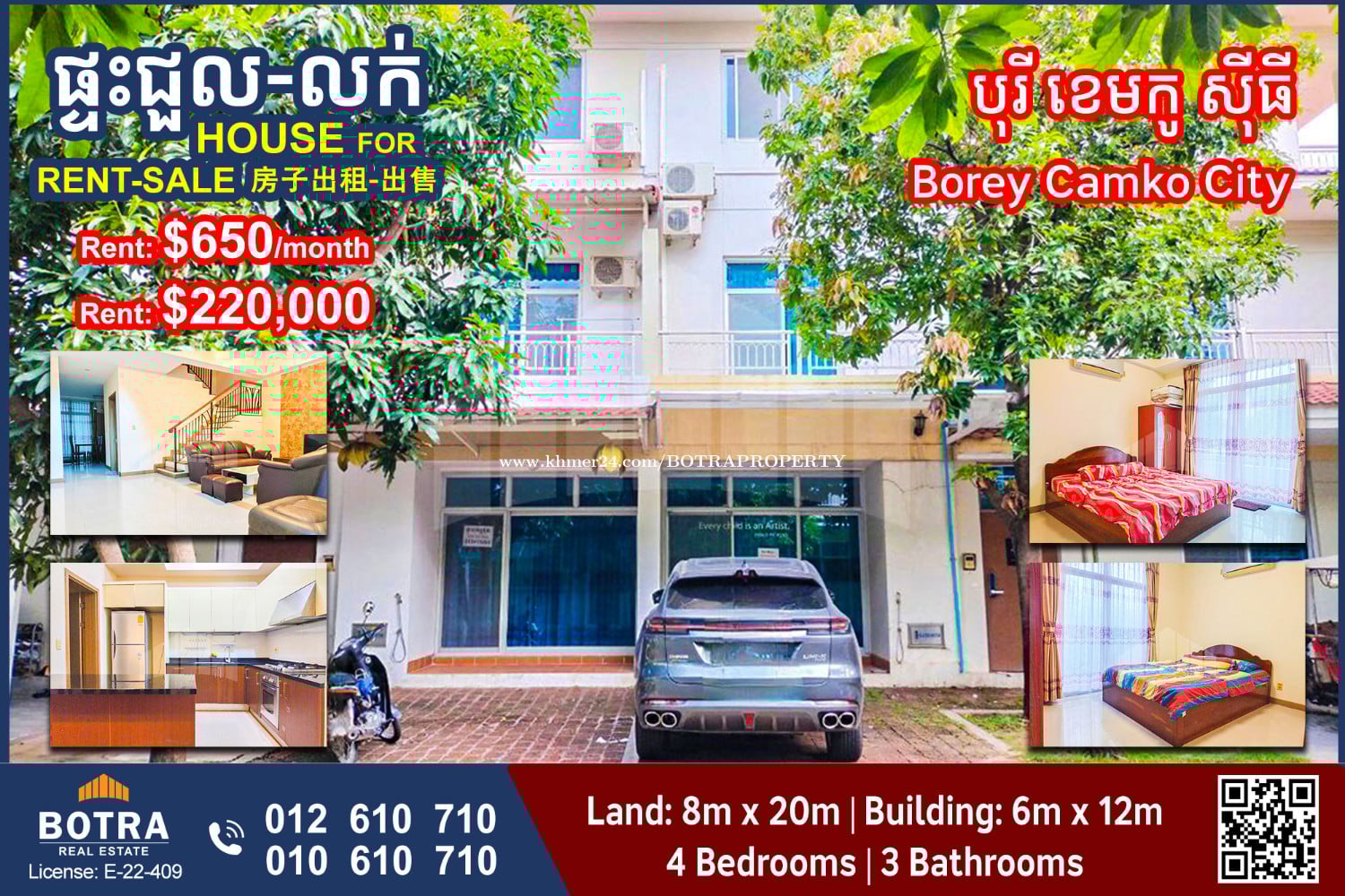 ๐ Link House for Rent-Sale #P729 ๐ Location in Borey Camko City ๐ Selling: $220,000 (Negotiable) ๐ Rental: $650/month (Negotiable) - Land Size: 8m x 20m - House Size: 6m x 12m - Bedrooms: 4 | Bathrooms: 3 - Some Furniture โโโโโโโโโ Contact us now ๐ 012610xxxClick To Call (Cellcard) ๐ 010610xxxClick To Call (Smart) โถ๏ธ t.me/BotraRealEstate (Chat)
