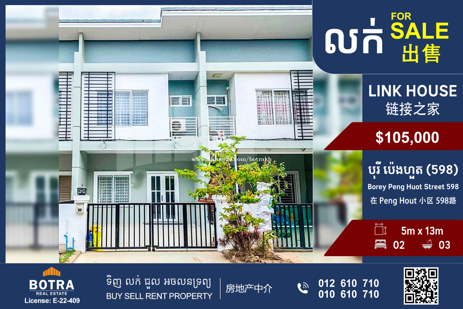 ๐ฃ Link House LD for Sale #P443 ๐ Borey Peng Huot Street 598 ๐ Price: $105,000 (Nego) โข Land Size: 5m x 13m โข House Size: 5m x 7m โข Bedrooms: 02 | Bathrooms: 03 โข Beautifully decorated โโโโโโโโโ Contact us now ๐ 012610xxxClick To Call (Cellcard) ๐ 010610xxxClick To Call (Smart) โถ๏ธ t.me/BotraRealEstate (Chat)