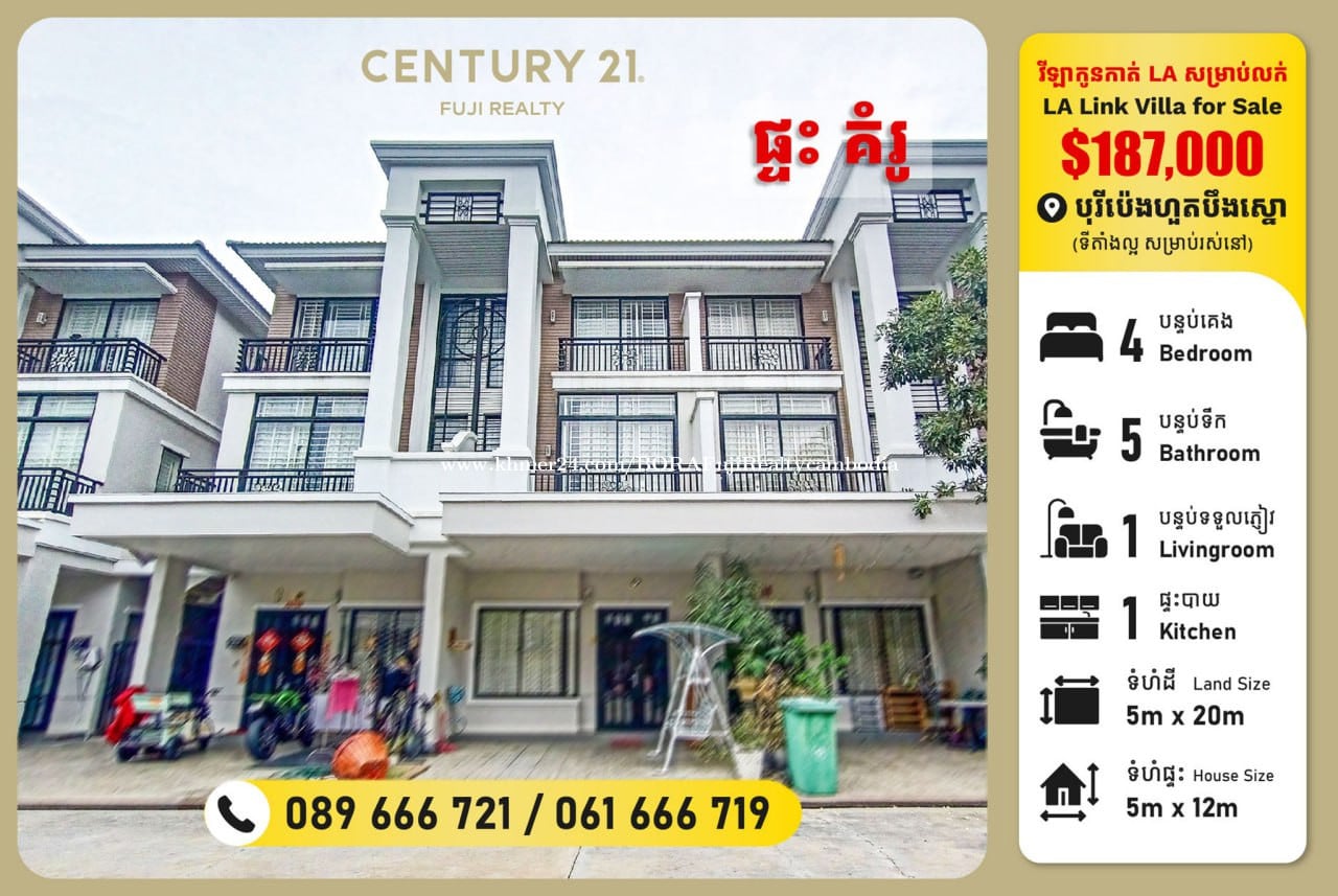 Link Villa LA for Sale Peng Houth Boueng Snor - Price Sale: $187,000 - House size: 5m x 12m - Land size: 5m x 20m - Bedroom: 4 - Bathroom: 5 Contact for Viewing or More Info: