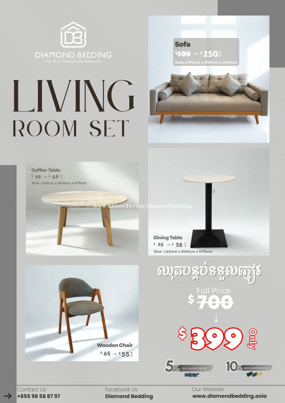 Living Room Set Make your dream Living Room come true . Sofa bed . Coffee table . Table . Chair