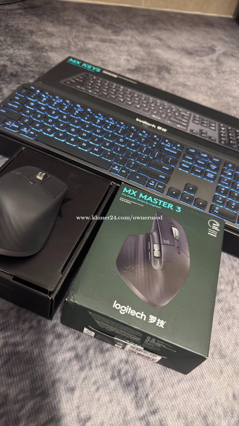 នៅប្រអប់ គុណភាពល្អ មិនសូវបានប្រើប្រាស់ នៅដូចថ្មី 99.99%! Logitech MX Master 3 - Battery: Rechargeable Li-Po (500 mAh) Logitech MX Keys - Battery: Rechargeable Li-Po (1500 mAh) - Sensor Technology: Darkfield high precision - Buttons: 7 buttons (Left/Right-click, Back/Forward, App-Switch, Wheel mode-shift, Middle click), Scroll Wheel, Thumbwheel, Gesture button - Customization app Logi Options