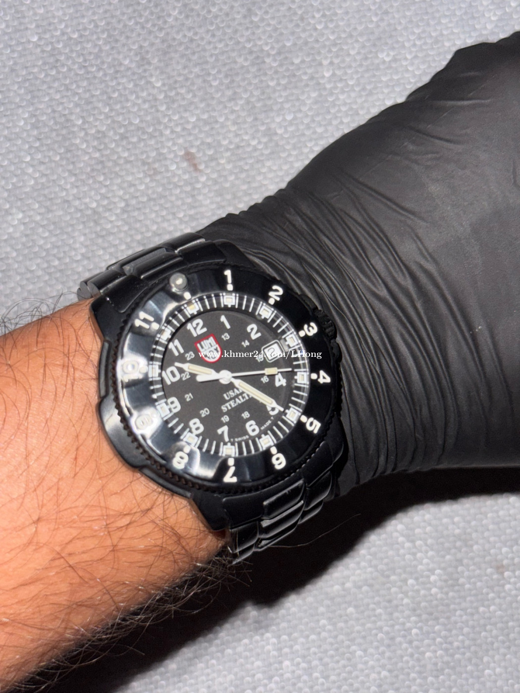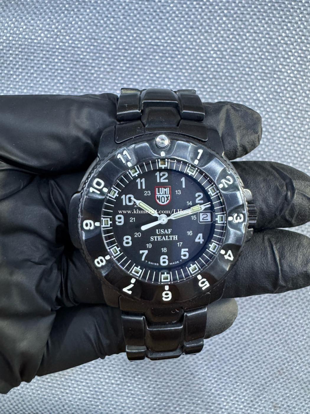 Luminox F-117 Nighthawk 3400 Series / USA -តម្លៃ📌 160$💵 -ផលិតផលប្រទេសស្វីស100% -កញ្ចក់ធន់និងការឆ្កូត -នាឡិកានឹង ខ្សែអីណុក ក្រូម៉េពណ័ខ្មៅ PVD -មុខងារ/ ទី -នាឡិកាប្រេីថ្ម -ការពារជ្រាបទឹកបាន 200ម៉ែត្រ -កម្រាស់ 12mm ត្រចៀក 22mm -ទំហំនាឡិកា 43mm