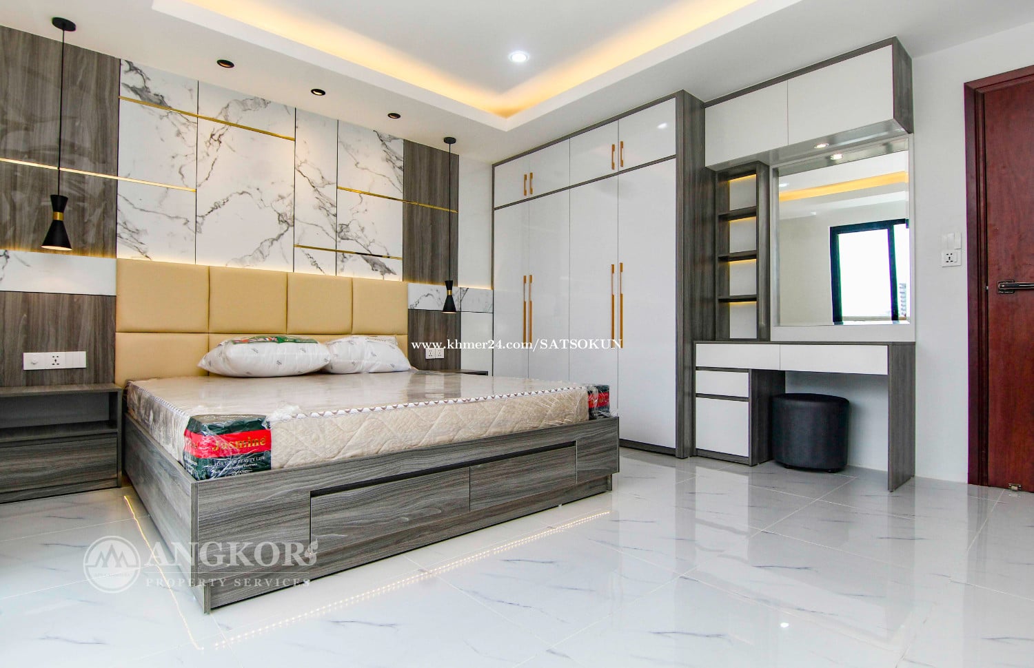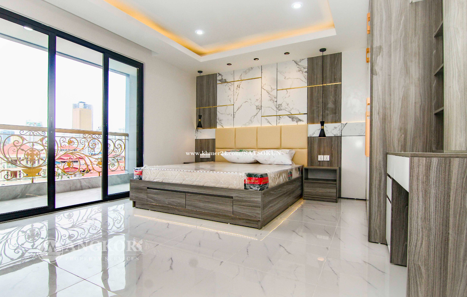 Modern unit one bedroom apartment for rent nearby Tuol Slang Museum area. It has 1 bedroom, 1 bathroom, built in closets, hardwood floor, natural light, outdoor space and furnished. The unit is equipped with a balcony, gas stove, microwave, refrigerator, wooden cabinets, wardrobe, bedside table, dining table, and a washing machine. Building amenities include security, high speed internet, cable, Flat Screen TV, cleaning 1 time/week, Change bed sheet 1/Months, elevator, generator and parking motorbike. + Rental Price: $ 500 | Months + Unit floor: 4th floor + Unit Size: 55sqm + 1 Modern Bedroom + 1 Modern Bathroom + 1 Modern Kitchen + 1 Modern Livingroom + Lovely Balcony with Fresh Air flowing + Fully Furnished Unit apartment MORE INFORMATION CONTACT US: Tell: 098335xxxClick To Call-099335xxxClick To Call (Telegram, WhatsApp, and Signal)
