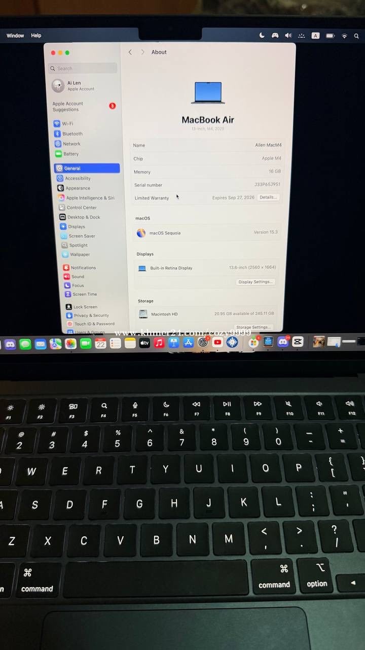 condition 99% , abody abit dense . M4 Air Macbook , ram 16gb , storage 256gb , battery cycle 25 , battery capacity 100% . telegram : 092376xxxClick To Call