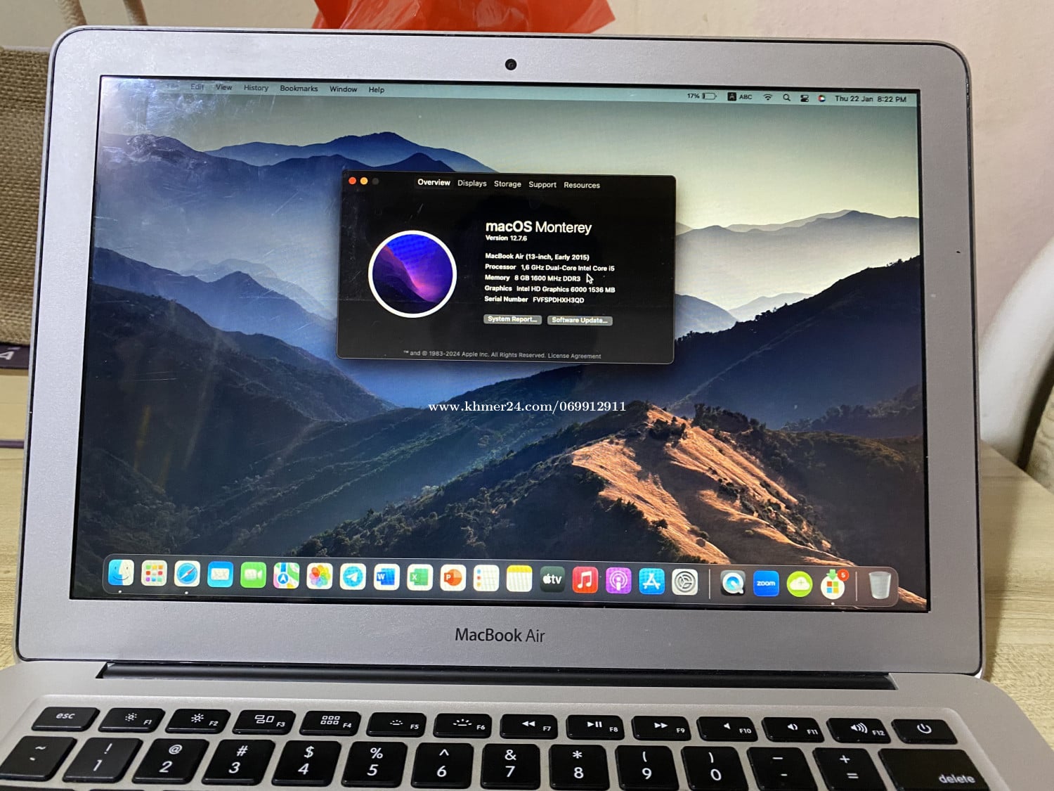 MacBook Air 2015 នៅល្អប្រើ ថ្មប្រហែល៥ម៉ោង មានឆ្នាំងសាកស៊ីន បិតscreenរួច ស្ដើងស្អាត