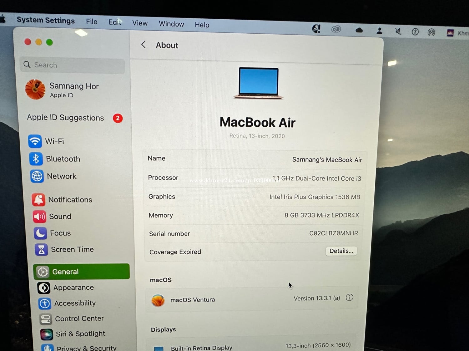 Macbook Air 2020 13” 8G+256 ស្អាត 99% អត់កំពិត កាលទិញថ្មីប្រអប់ មិនធ្លាប់ជួសជុល ផ្លាស់ប្តូរអ្វីទាំងអស់ ស៊ីន100% Inbox Telegram 092200xxxClick To Call