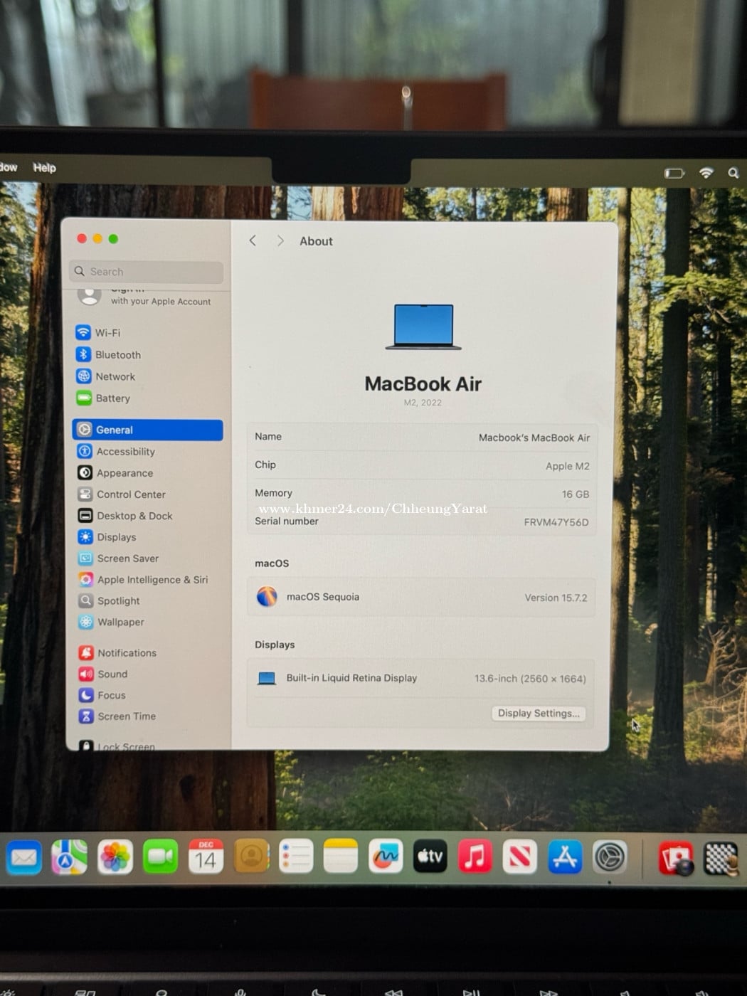 ๐ป MacBook Air M2 (2022) Selling my MacBook Air M2 (2022) in excellent, like-new condition. ๐น No dents, no scratches, no damage at all ๐น Always well-taken care of ๐น Battery health 100% ๐น Works perfectly โ fast and smooth ๐ Specifications: โข Model: MacBook Air (2022) โข Chip: Apple M2 โข Memory: 16GB RAM โข Display: 13.6โ Liquid Retina (2560 ร 1664) โข macOS: Sequoia (latest version) Perfect for students, office work, business, design, and everyday use.