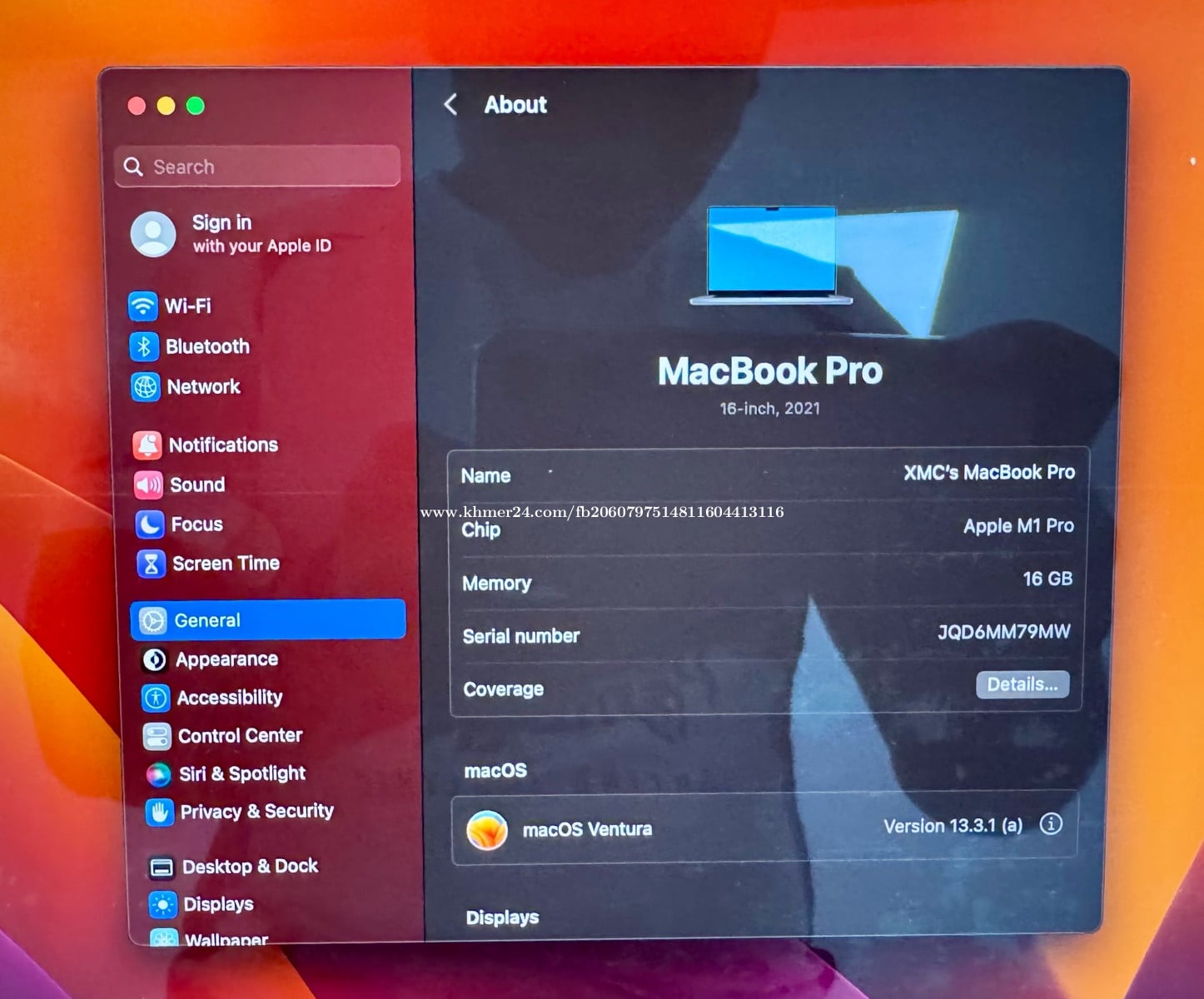 MacBook Apple M1 Pro នៅថ្មី ៩៩%