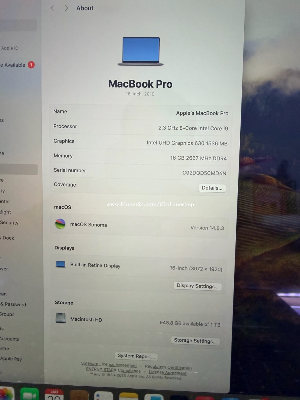 MacBook Pro 16-inch 2019 Touch Bar and Touch ID SSD: 1TB RAM: 16GB DDR4 CPU: 2.3GHz 8-Core intel Core i9 GPU: 4GB Radeon Pro 5500M ១ទឹកនៅស្អាត ពណ៌ប្រផេះ Included: Original Charger Price: $765. https://t.me/iGphoneshop Call: 017565xxxClick To Call. 087770xxxClick To Call.