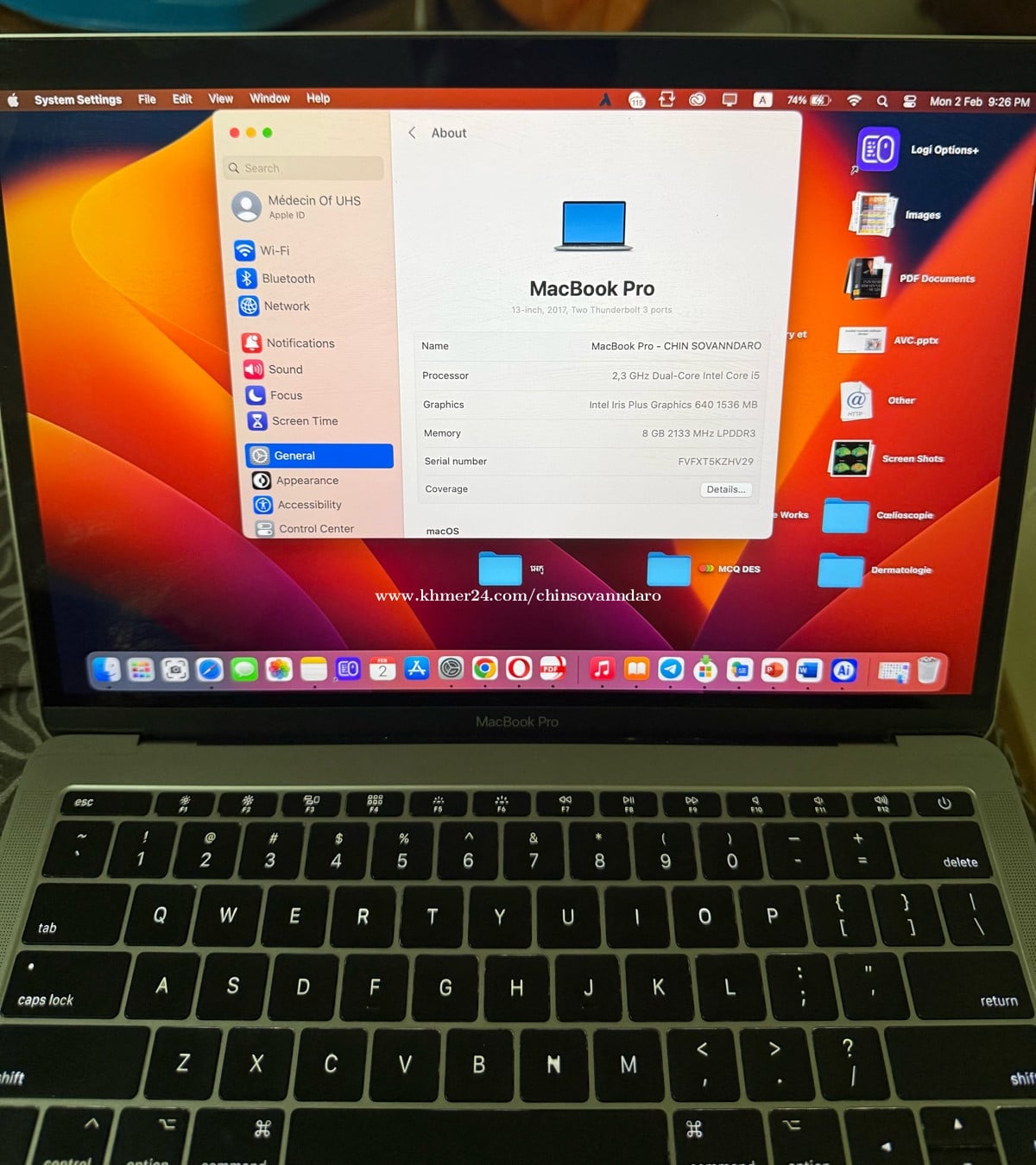 Macbook pro 2017 លក់250$ តម្លៃចរចាបាន TG: 070410xxxClick To Call