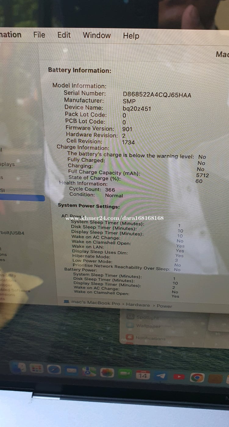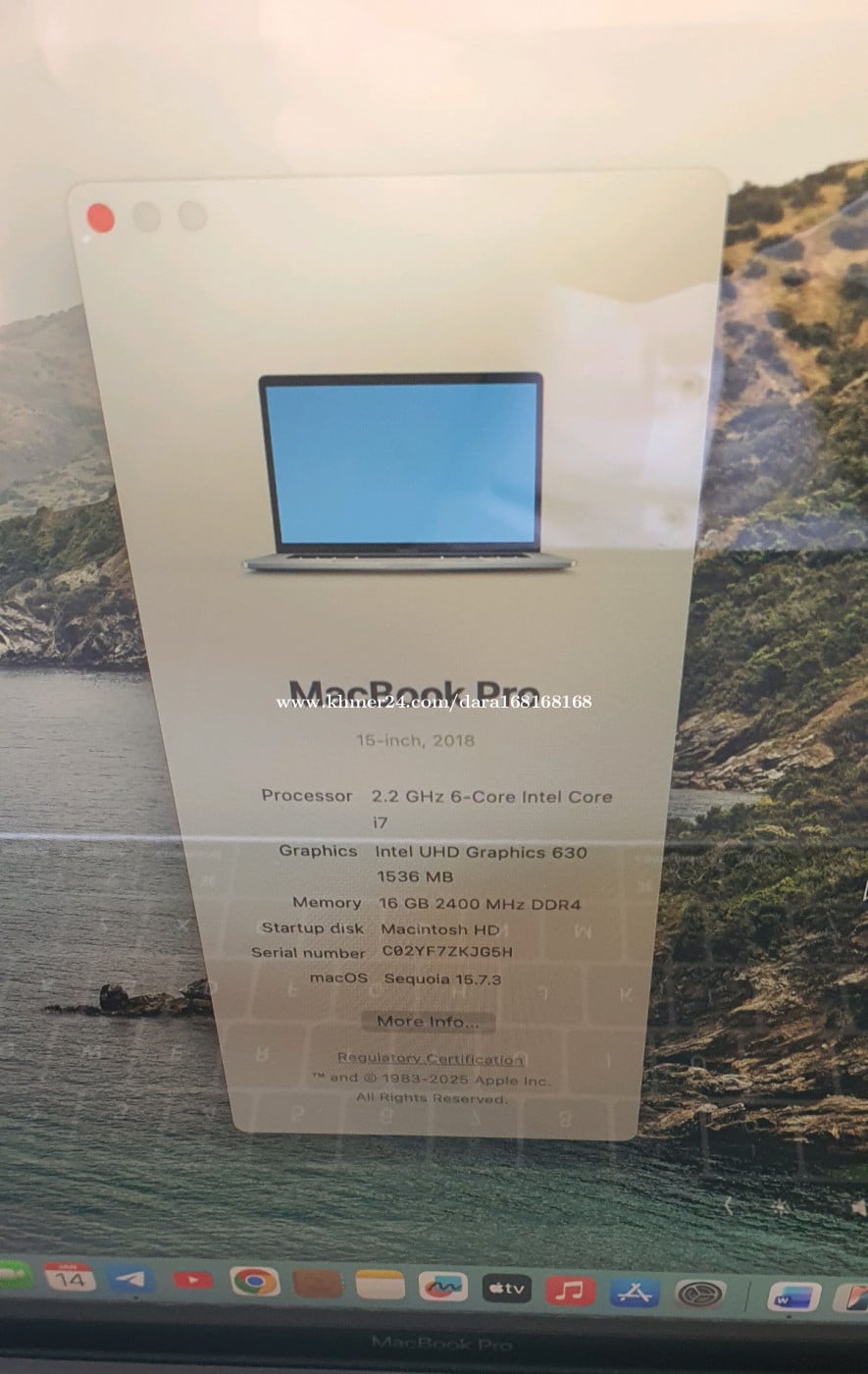 MacBook Pro 2018លក់ នៅស្អាត់ Inte i7 . Ram 16g. SSD M2 .256gb